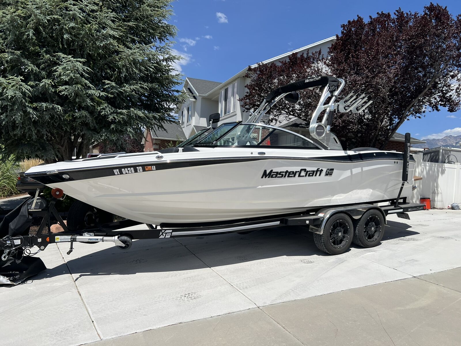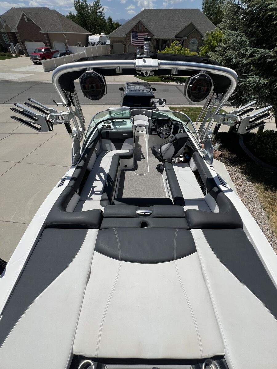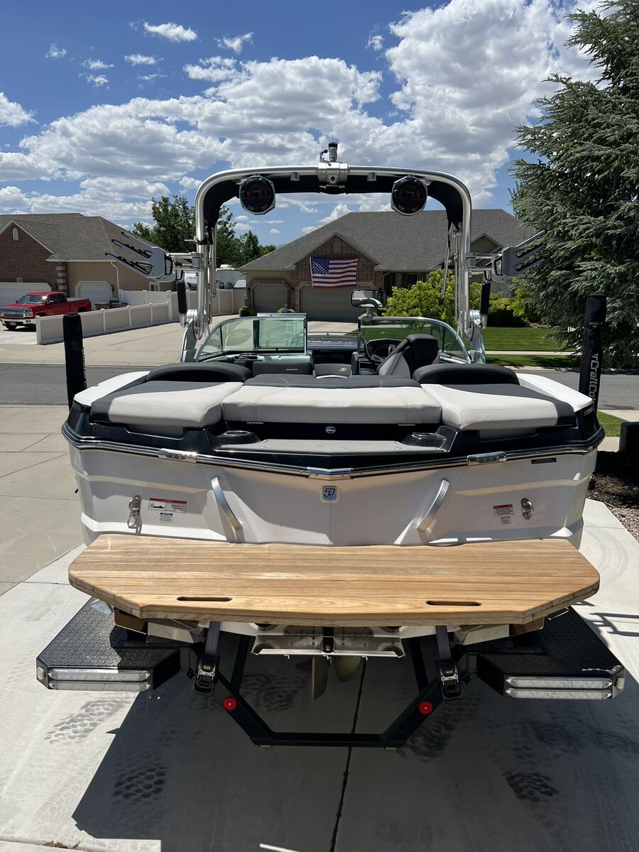 The MasterCraft XT23, specifically the 2018 model, is a 23-foot wakeboard and surf boat designed for families and all skill levels. It's known for its crossover capabilities, blending classic traditional bow styling with progressive design. Key features include the Gen 2 Surf System, a powerful Ilmor engine, and ample seating for 16 people. Key features include Dual screen upgrade with rear camera Upgraded engine to the Ilmor 6000GDI 6.2L with 430 HP Only 234 engine hours Cool Touch vinyl 16 Person seating capacity Teak wood deck