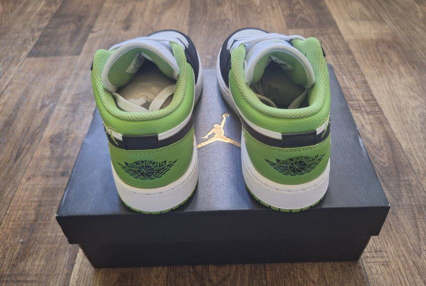 Here's a brand new pair of Jordan 1 Low SE floral vines shoes. The shoes are a size 5y or 6.5 in woman's.