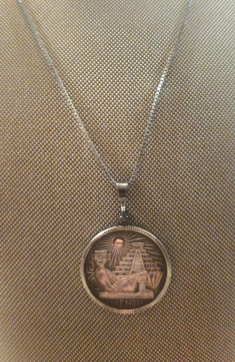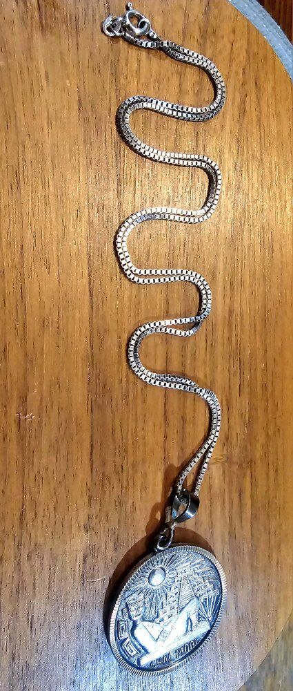Cool Vntg, intricately RAISED TEXTURED DETAIL, Mexican Sterling Silver Mesoamerican CHAC MOOL pendent finished with a cut coin edge in EXCELLENT SHAPE!!