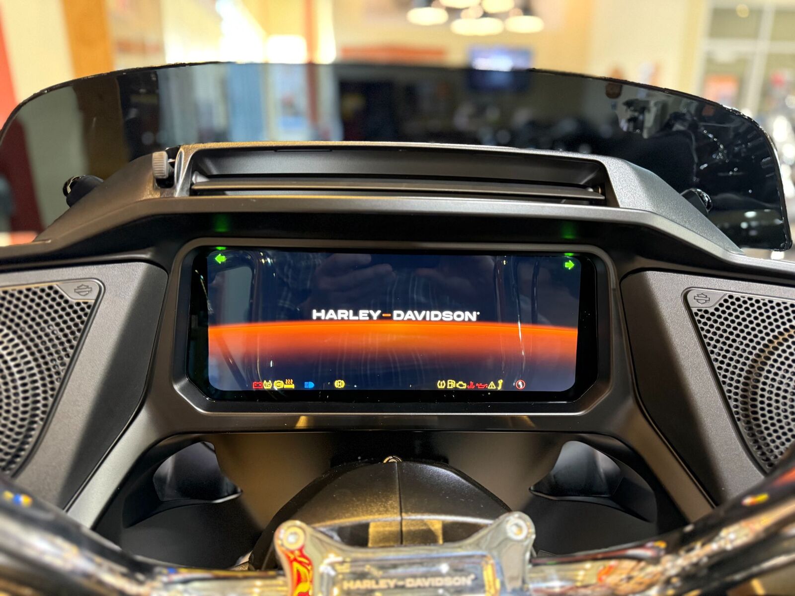 Tour de force. The Road Glide has an aerodynamic Sharknose fairing and a liquid-cooled Milwaukee-Eight 117 engine that produces 130 ft-lb of torque, while reduced weight makes handling more responsive. With customizable ride modes, Bluetooth connectivity, and a 12.3-inch touchscreen display, the Road Glide offers a refined mix of tech, style, and power.