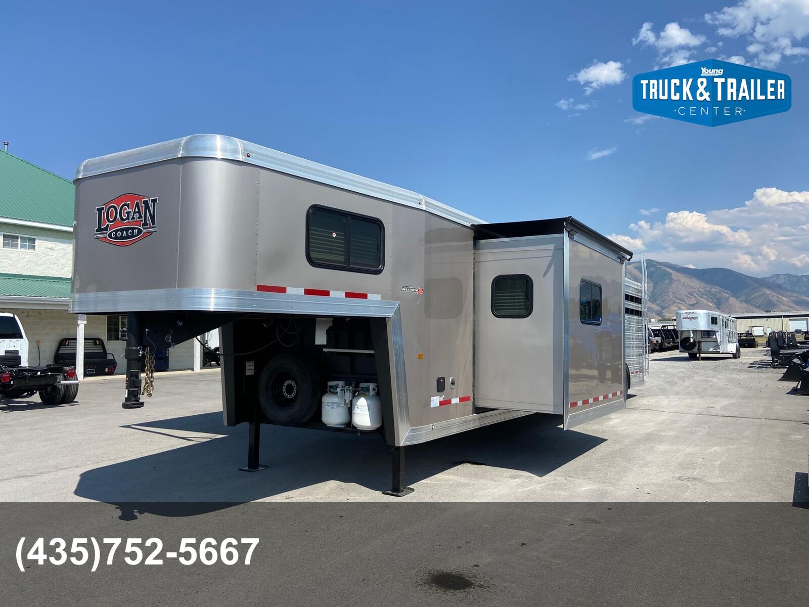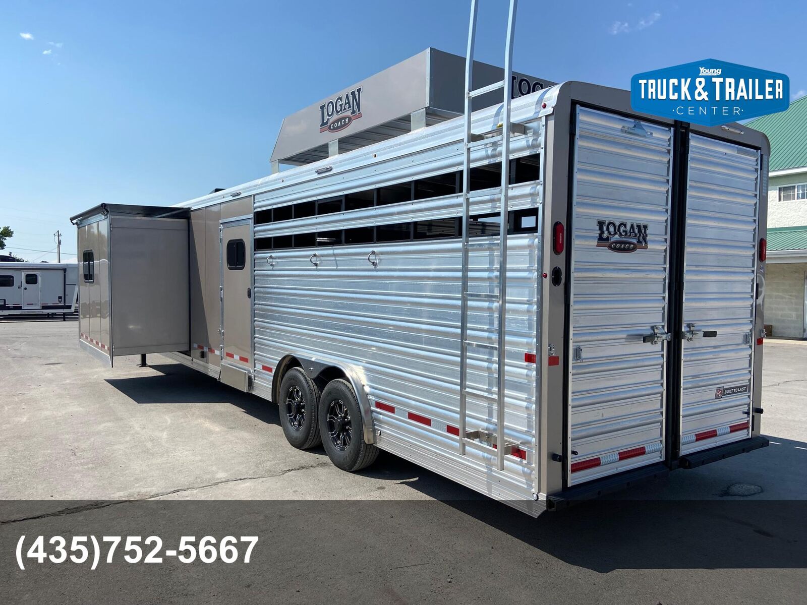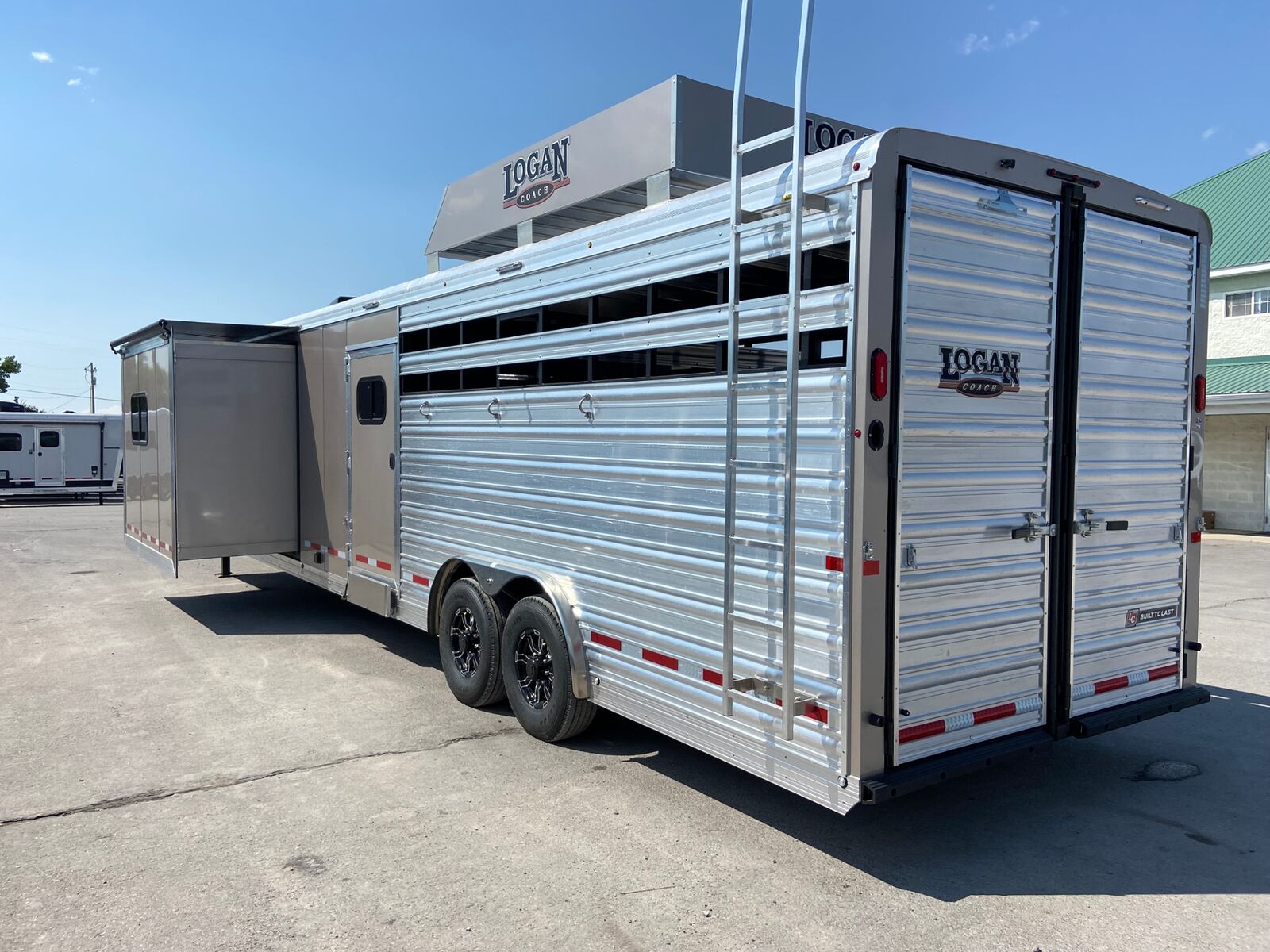 14' Stock Area 14' Living Quarters Mid Tack The basics never looked better. Limited Horse trailer has all the features any Horseman may need. The Limited Living Quarter horse trailer models are only “Limited” on available options and price, but include all of the Logan Coach quality. STRUCTURAL Standard Features Galvanized Structural Tubing – Frame Rails, Floor Cross Members and Wall Uprights