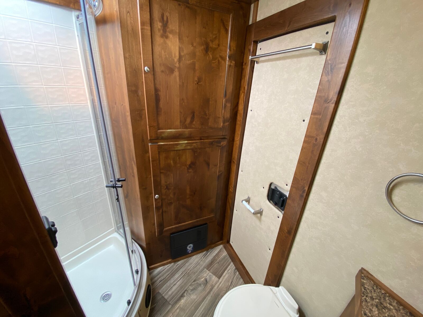 Choice of 3 wood stains Tack Dressing Room Standard Features Torsion Axles