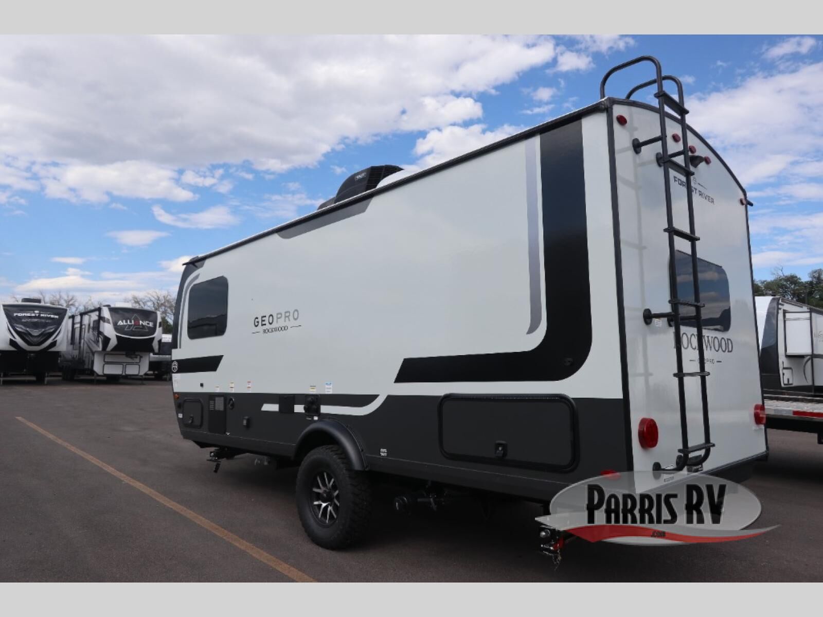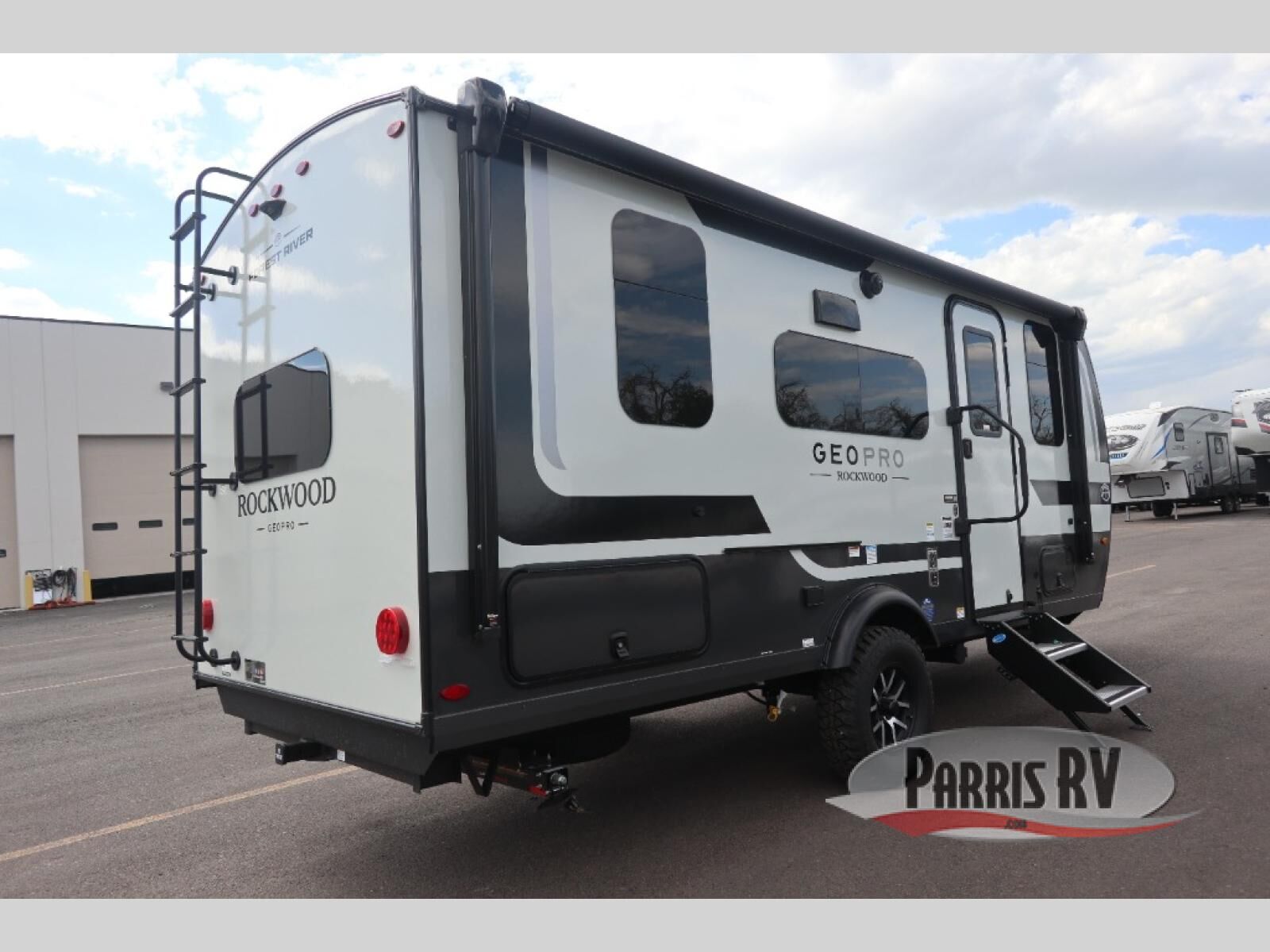 With any Rockwood GEO Pro travel trailer by Forest River you will enjoy easy towing, durable construction, and off-road capabilities with larger 15" tires and a lift kit! Each model is constructed with complete composite wall construction for added strength and durability, and the torsion axle, Rubber-Ryde suspension will make towing easier than ever. Inside, you'll find sleek roller shades for added privacy, a 12V refrigerator and a microwave, plus a 20,000 BTU furnace to keep you warm during the colder camping months.