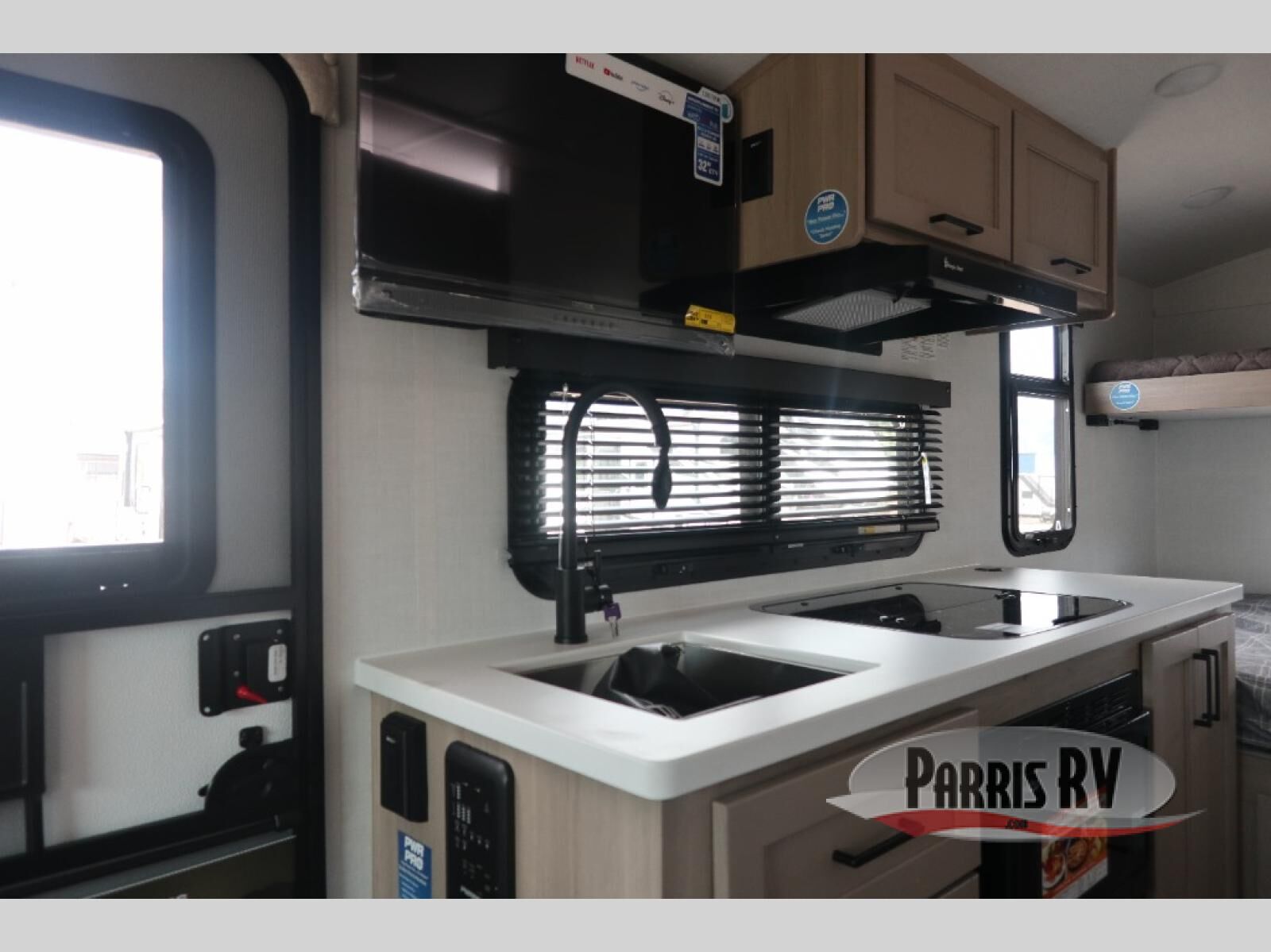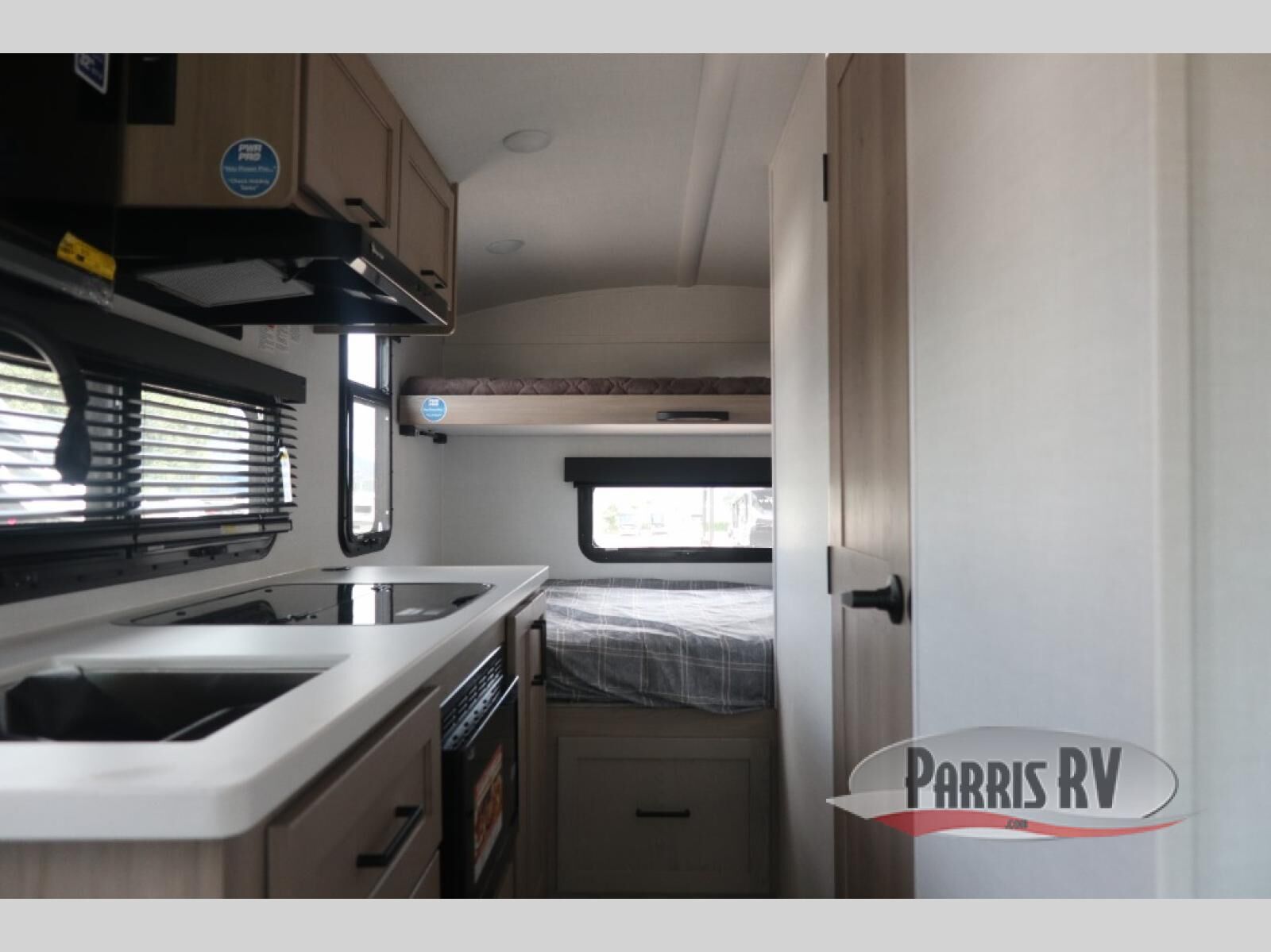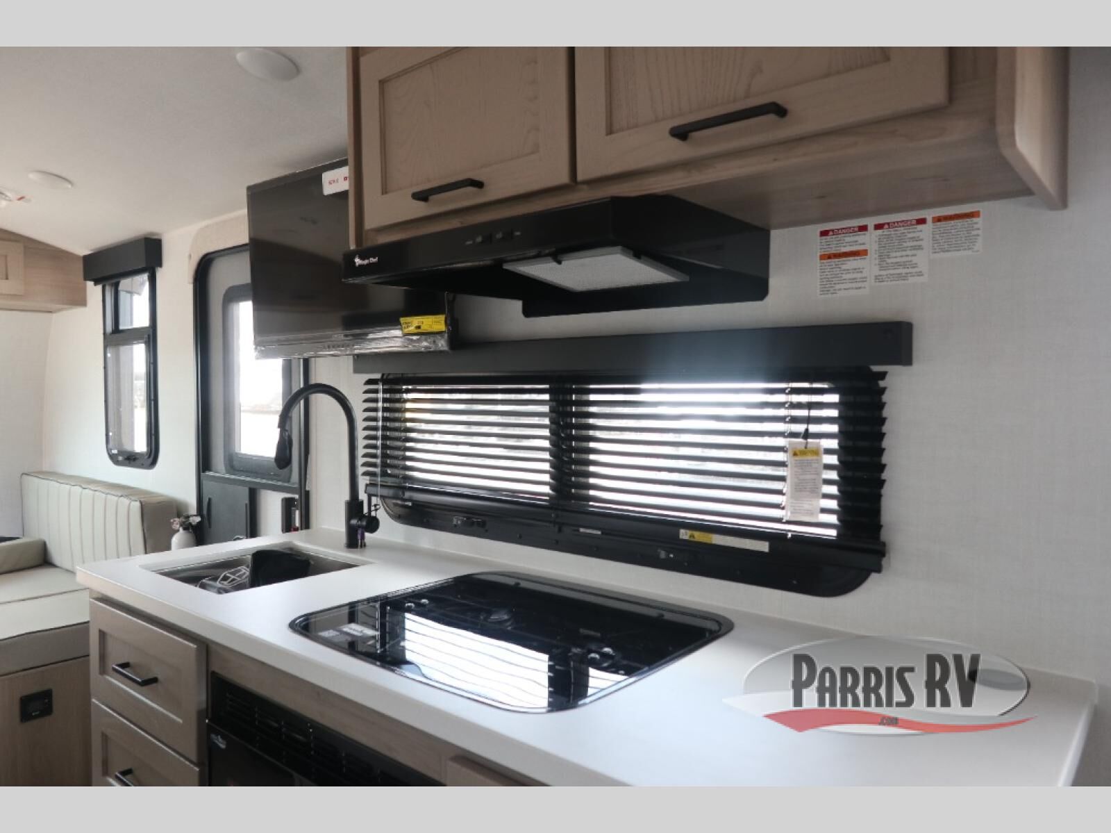 You'll love camping in this travel trailer that can sleep five each night. There is a front U-shaped dinette, a rear 54" x 74" full-size bed, plus a 26" x 80" flip-up bunk! A three burner cooktop and microwave oven let you create your best meals, and there is a 15' power awning and an exterior griddle if you want to cook outdoors. The full bath gives you privacy when freshening up after a day outdoors, and you'll find plenty of storage space in this unit, including in the overhead cabinets and the exterior pass-thru storage!