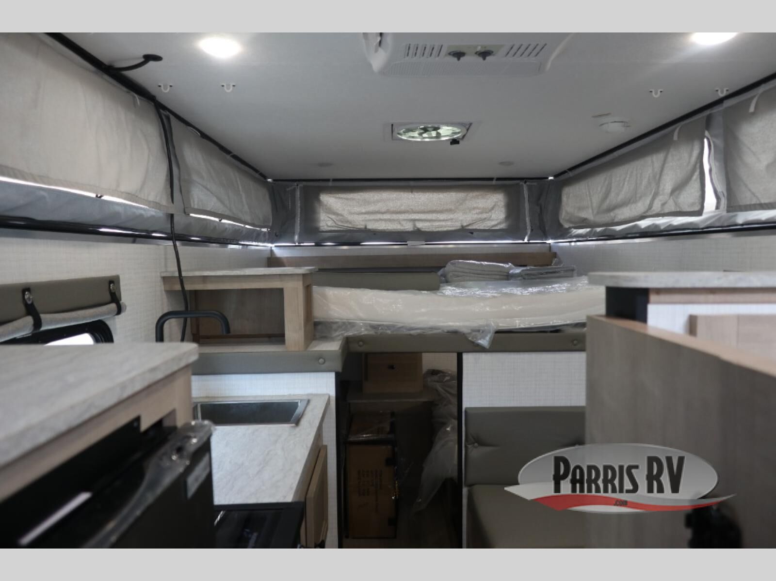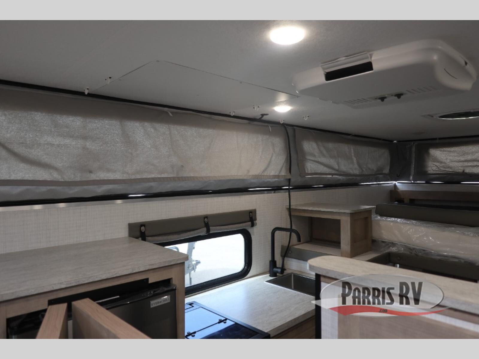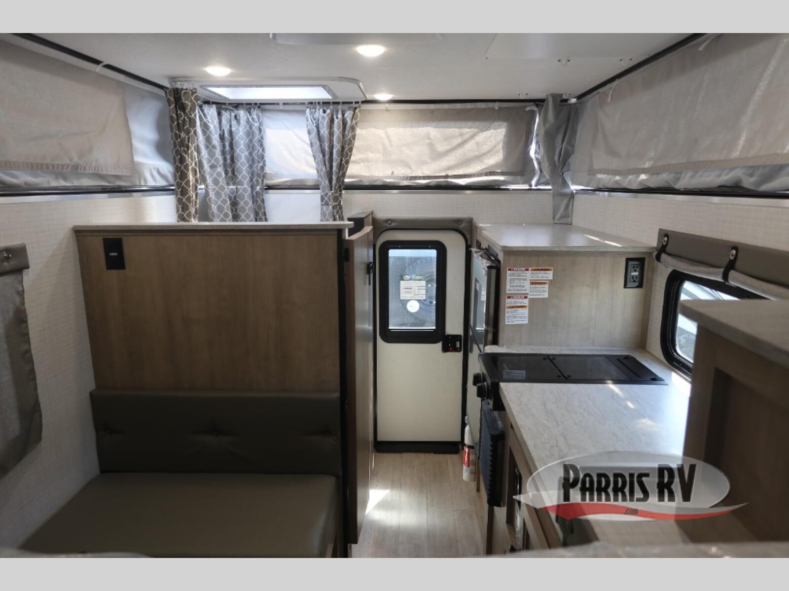 With any Palomino O.V.E (on vehicle equipment) travel trailer, you can plan to go off grid and off the beaten path! There are 15" mud tires, a Curt independent suspension axle, and a 400-watt solar panel that makes this possible. The gel coat fiberglass exterior is sure to be eye-catching, and the diamond plate adds protection against rock and debris. Each model also includes an electric pop top roof and a dual roof rack, which means you can bring along extra adventure gear. You will also enjoy many interior comforts, including a Create-A-Breeze fan for better ventilation!
