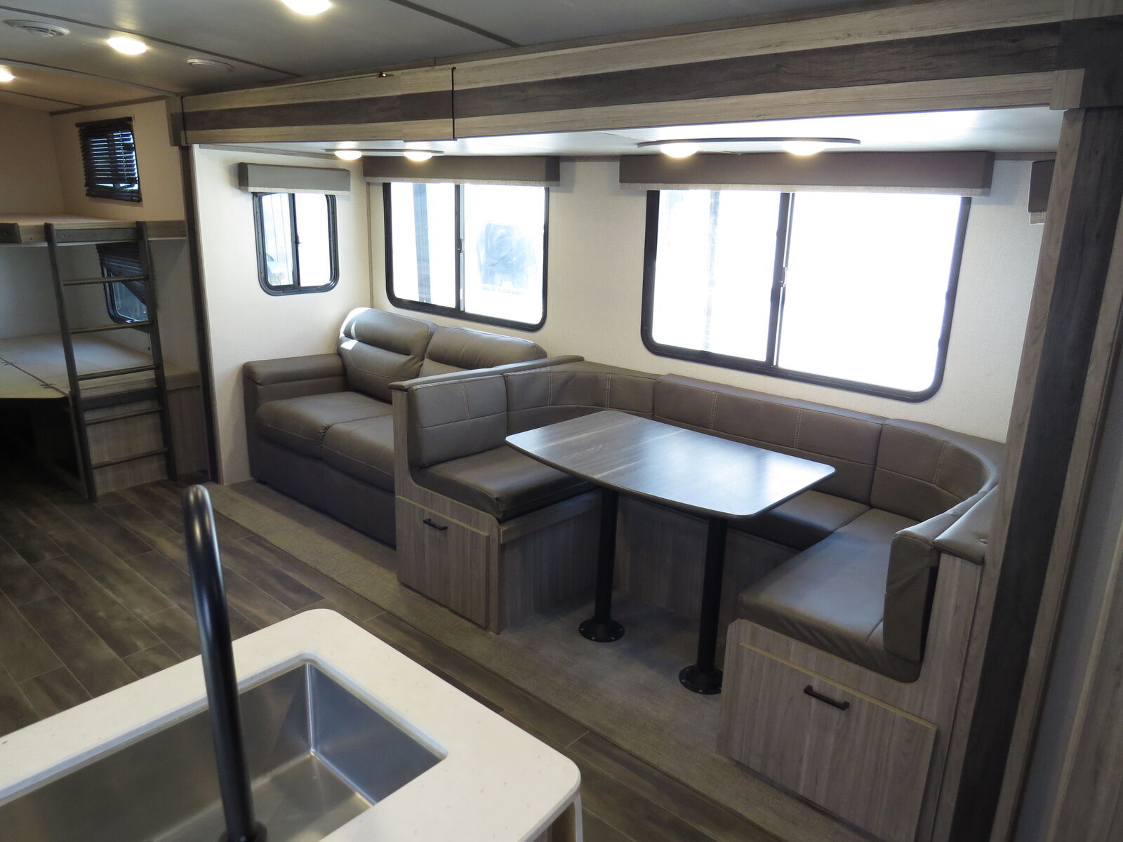 2 Big Rear, Solar!, Arctic Package,2 Bunks, U Shaped Booth Dinette & Couch Slide, Front Queen bed!, Lots of storage! Side Kitchen, Corner Bathroom, Couch & U Shaped Booth Dinette Makes down to bed, Fiberglass Exterior, A/C unit and Heat.