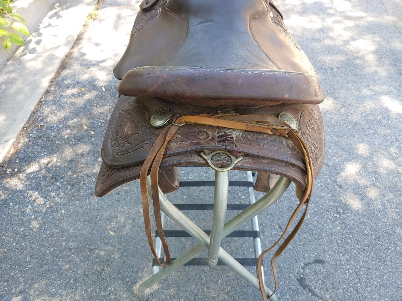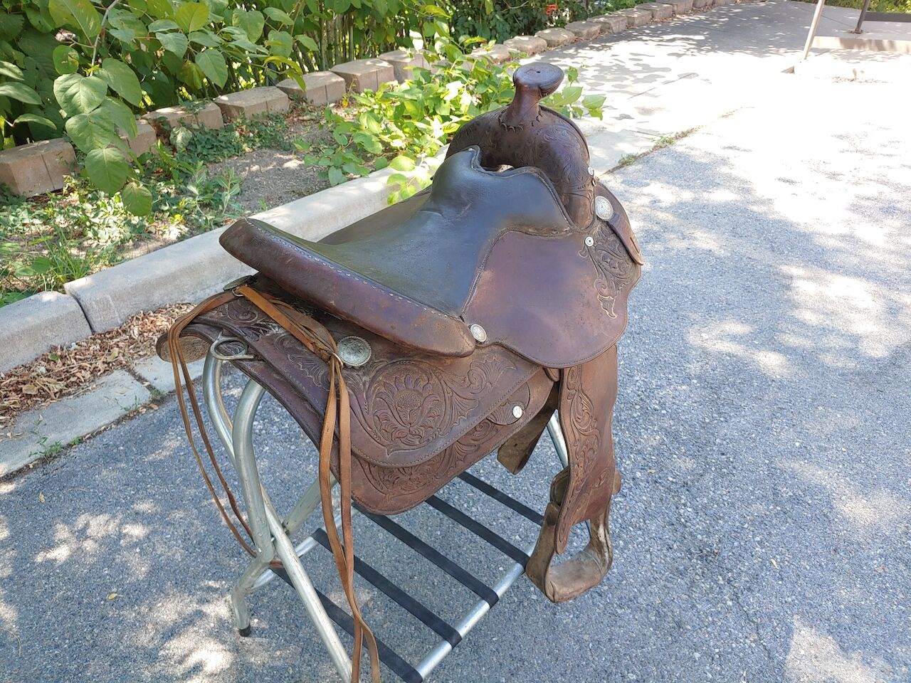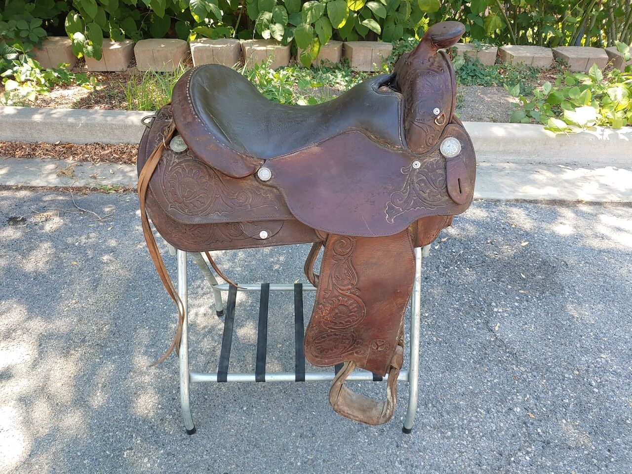 This saddle has been stored in my Father-in-Laws tack barn for a good 25 years. It was purchased in 1990 and used for about a decade. He absolutely loved this saddle and it would be great to see it go to a good home. Needs a super deep cleaning and probably several coats of Neem Oil but once restored would be a fine saddle to spend the day in. Asking $550.00