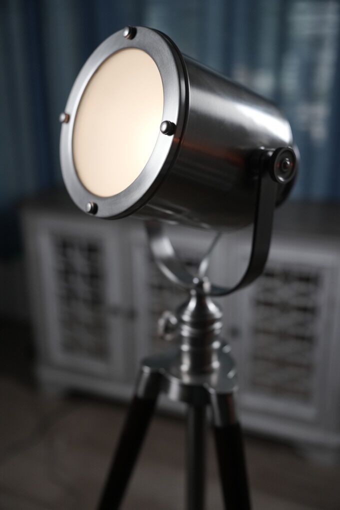 VenmoPottery Barn Photographer's Adjustable Tripod Metal Floor Lamp with Wooden Legs