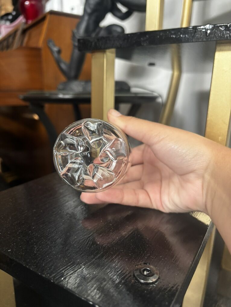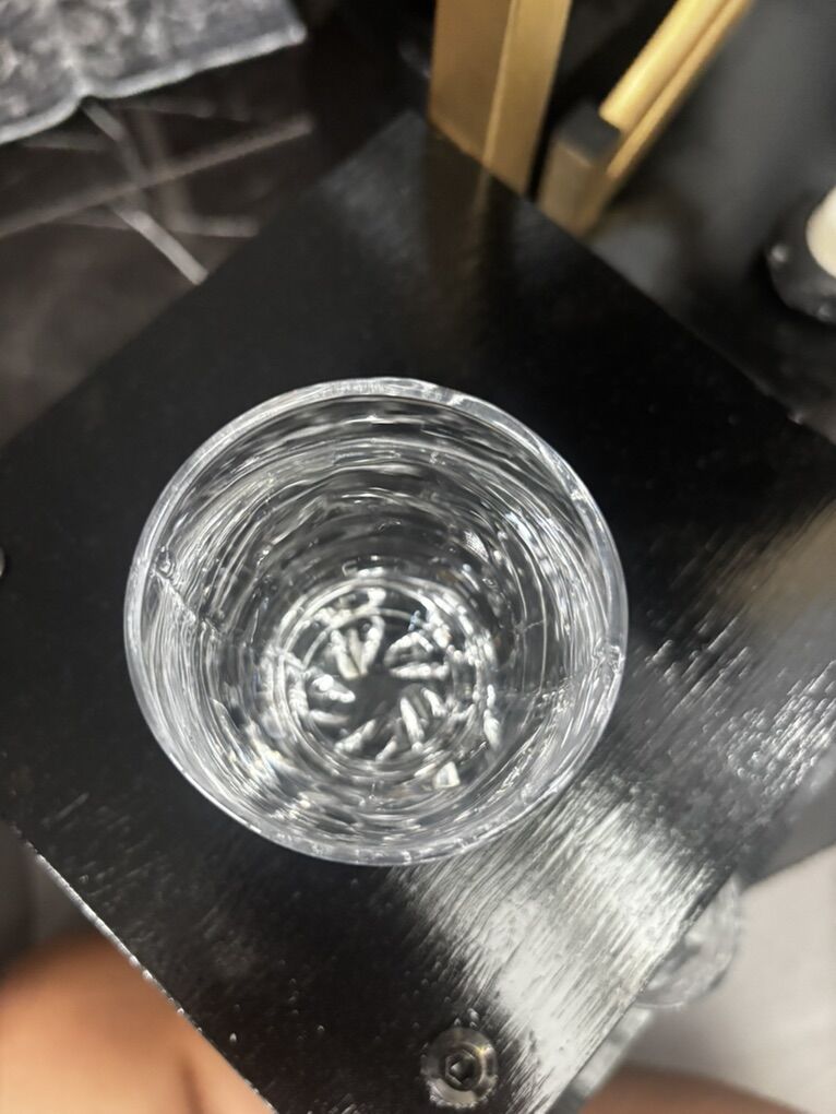 Venmo2 Honoria logo 6 oz embossed glasses with clear rock bottom. 4 inches tall and widest part on top is 2 1/2 inches. Get them both for 10 dollars