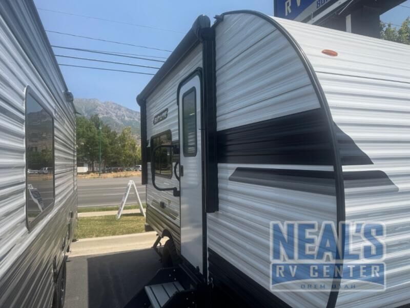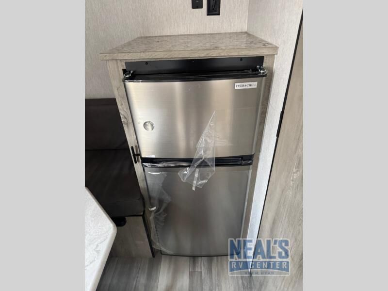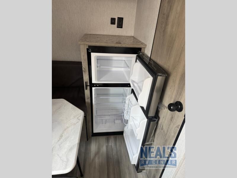 This lightweight travel trailer is perfect for two to three campers each night! You will sleep soundly on the front 54" x 74" bed with an overhead shelf and a closet for your things. Whip up eggs and bacon on the two burner cooktop in the morning, then dine at the 30" booth dinette. This can also double as sleeping space for an overnight guest or two little ones! The private bath with a 24" x 32" shower and a toilet will let you freshen up each day, and the double sink in the kitchen provides a place to wash your hands and teeth at night. You will also appreciate having a 4.3 cu. ft. 12V refrigerator to keep your food fresh and a 5K BTU wall A/C to keep you comfortable all summer long! WE ALSO HAVE A NON-LIFTED MODEL AVAILABLE!!