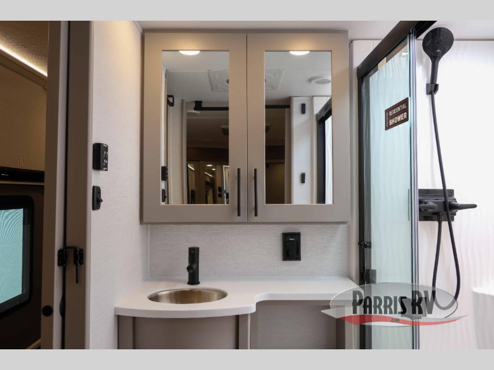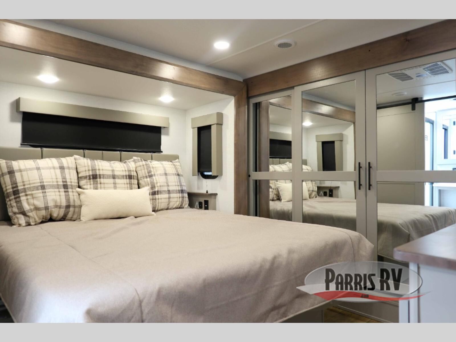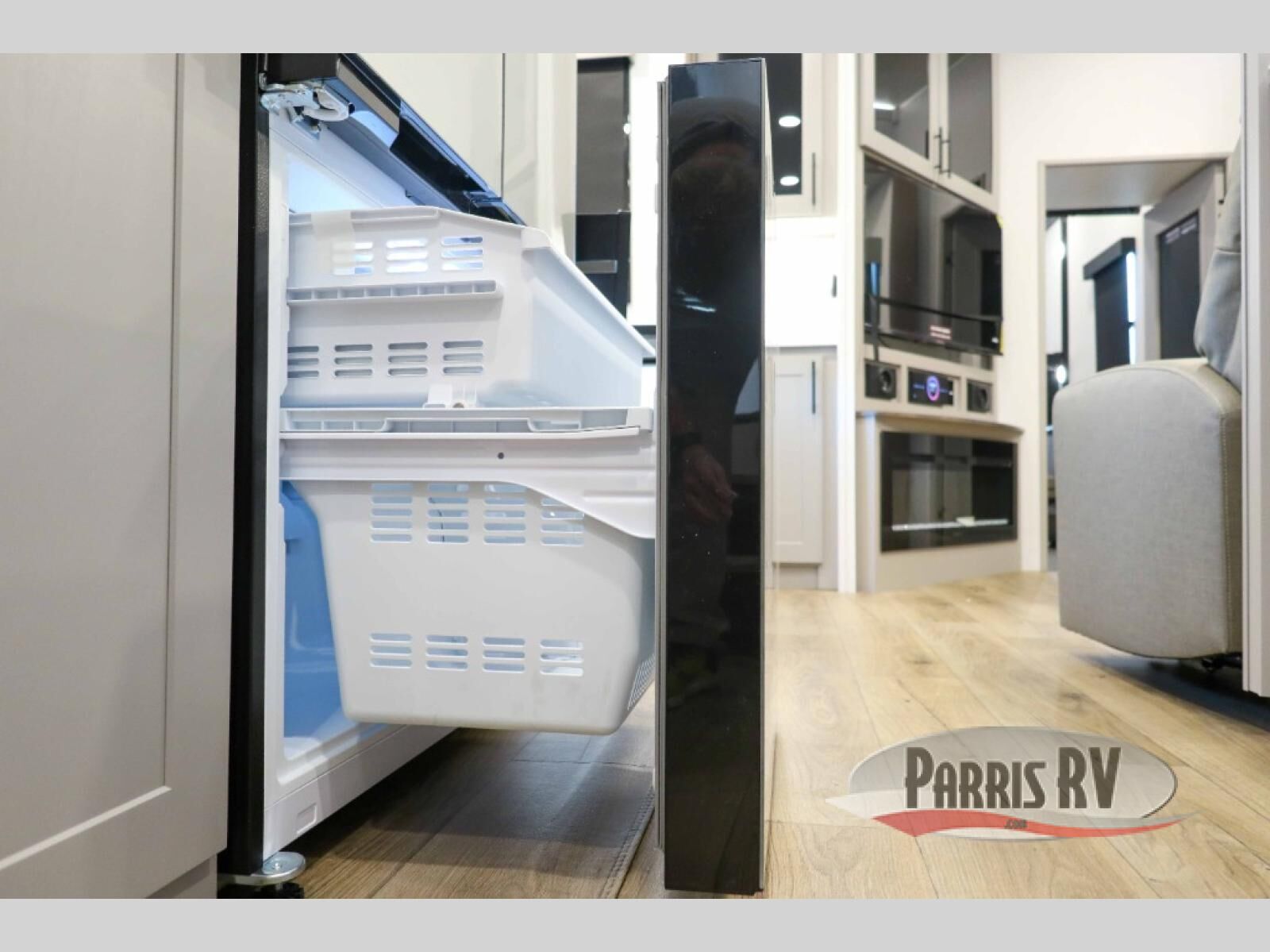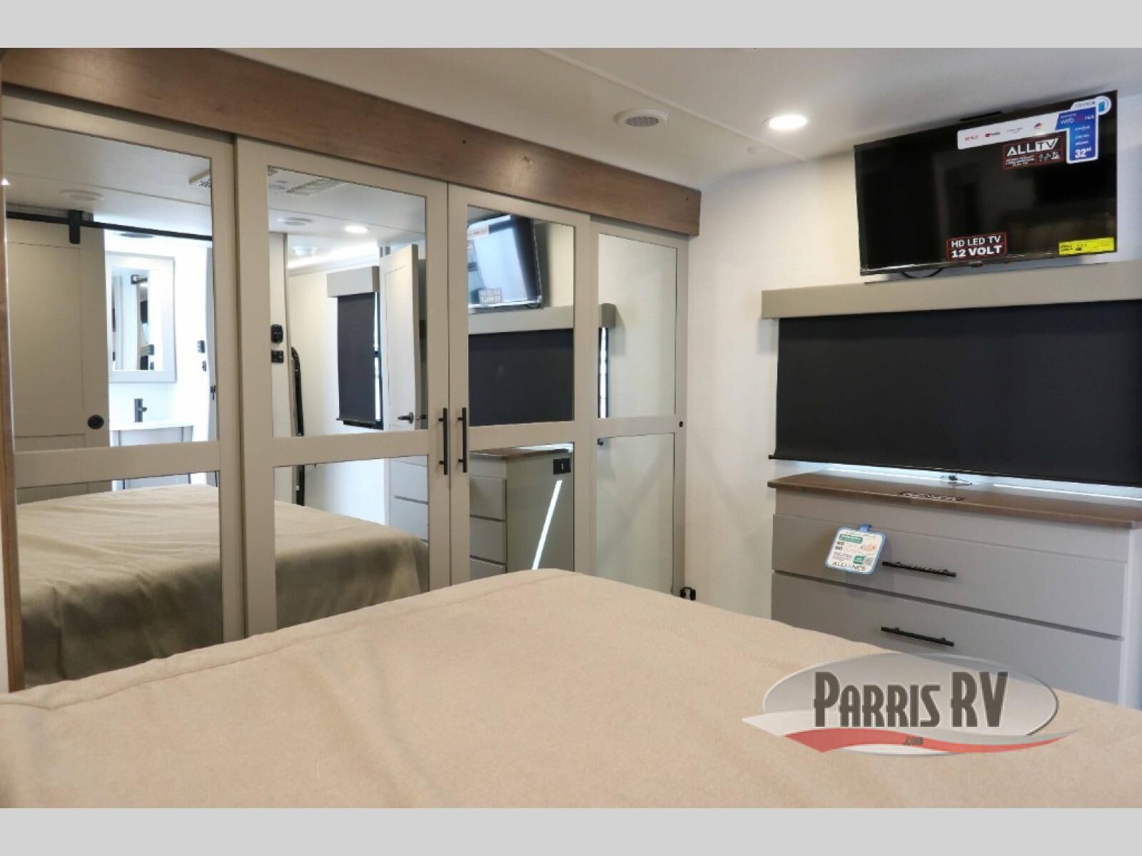 The whole gang will love camping in this toy hauler with a 14' garage for your toys and gear. Once you have arrived at your destination, you can set up the HappiJac roll-over sofas with a queen bed above them, and also a loft which opens to the garage area as well. A half bath is also available off the garage which is an added convenience for those sleeping in this converted area, and for those coming in off the trail so that they do not have to track all through the main unit to use the bathroom. The chef can prepare great meals for their hungry crew with the fully equipped kitchen including a four burner cooktop, a stainless steel 12V refrigerator, large sink, and plenty of countertop prep space. The rest of the gang can be relaxing on the large L-shaped sofa slide watching the 50" HDTV and enjoying the fireplace, or playing a game of cards at the dining table with four chairs. The front private bedroom features a king bed slide for more interior space, a flip top dresser for all of your belongings, and a front wardrobe with washer and dryer prep, plus it has an entrance into the dual entry bathroom!