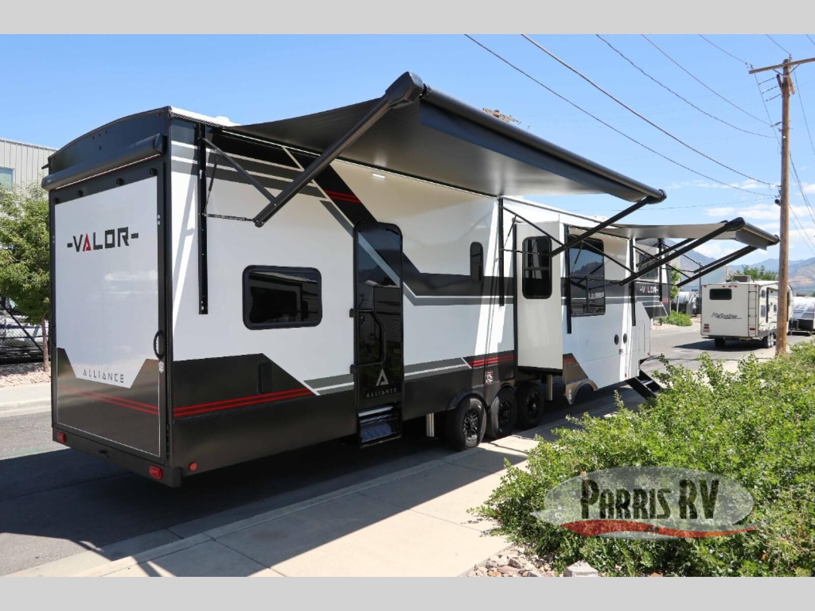 You can bring your toys with you wherever you go with any one of these Alliance RV Valor toy hauler fifth wheels! They are adventure-ready with a quality build from the walk on roof with seamless PVC roof covering to the commercial grade vinyl flooring and MorRyde CRE3000 suspension system. The Performance Running Gear package comes with a 101" wide-body benchmark chassis platform, 7,000 lb. Dexter axles, and a space enhancing drop frame storage compartment to pack in all your riding gear. You can even go off-gridding thanks to the Off the Grid Pack that has two 400 watt solar panels, generator prep, a 40 amp charge controller, and a 100 amp hour lithium iron phosphate battery. Some of the interior comforts you will enjoy are the hardwood cabinet doors and drawers, solid surface kitchen countertops, and commercial grade vinyl flooring with no carpet to make clean up a breeze. The Valor toy haulers are also the Master of 12 Volt with USB charging station throughout, a stainless steel refrigerator, and more 12 volt features to make camping hassle-free!