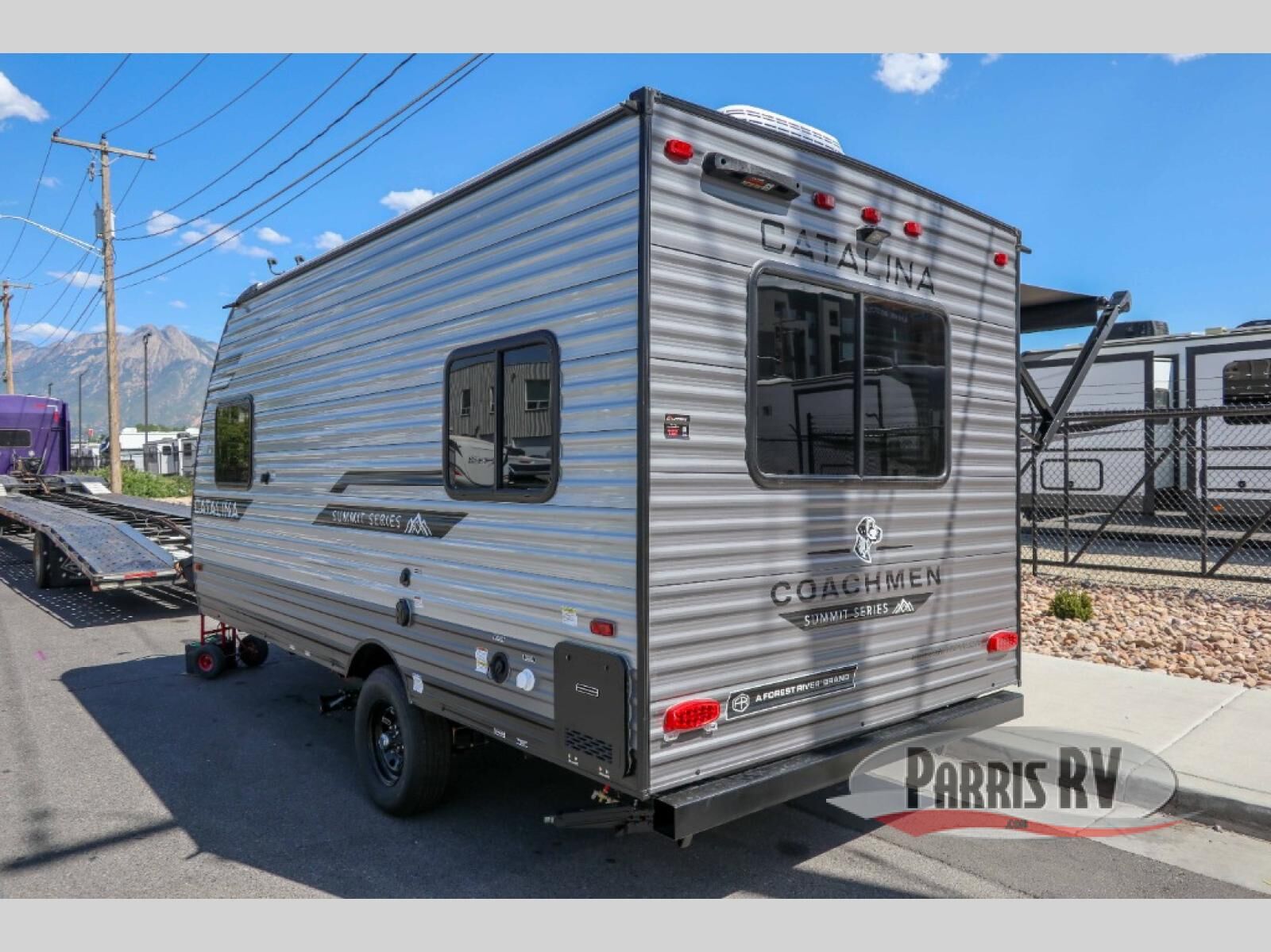 With any Catalina Summit Series 7' by Coachmen RV, you can create an easier adventure with the versatility and simplicity of the shorter lengths and lighter weights! Each includes a premium exterior graphics package, a smooth HD aluminum radius front, and EZ lube axles with leaf spring suspension. The exterior offers a heavy duty standard tongue jack, a diamond plate rock guard to protect against road debris, exterior RG-6 coax cabling and satellite prep, rear view camera prep, and flush mount baggage doors with radius corners for your outdoor gear. Inside, you will enjoy a premium JBL interior speaker, USB charging ports, seamless Thermofoil countertops throughout, a deep basin farm style sink for easy cleanup, and GE kitchen appliances. It's time to choose an affordable and maneuverable single axle trailer today!