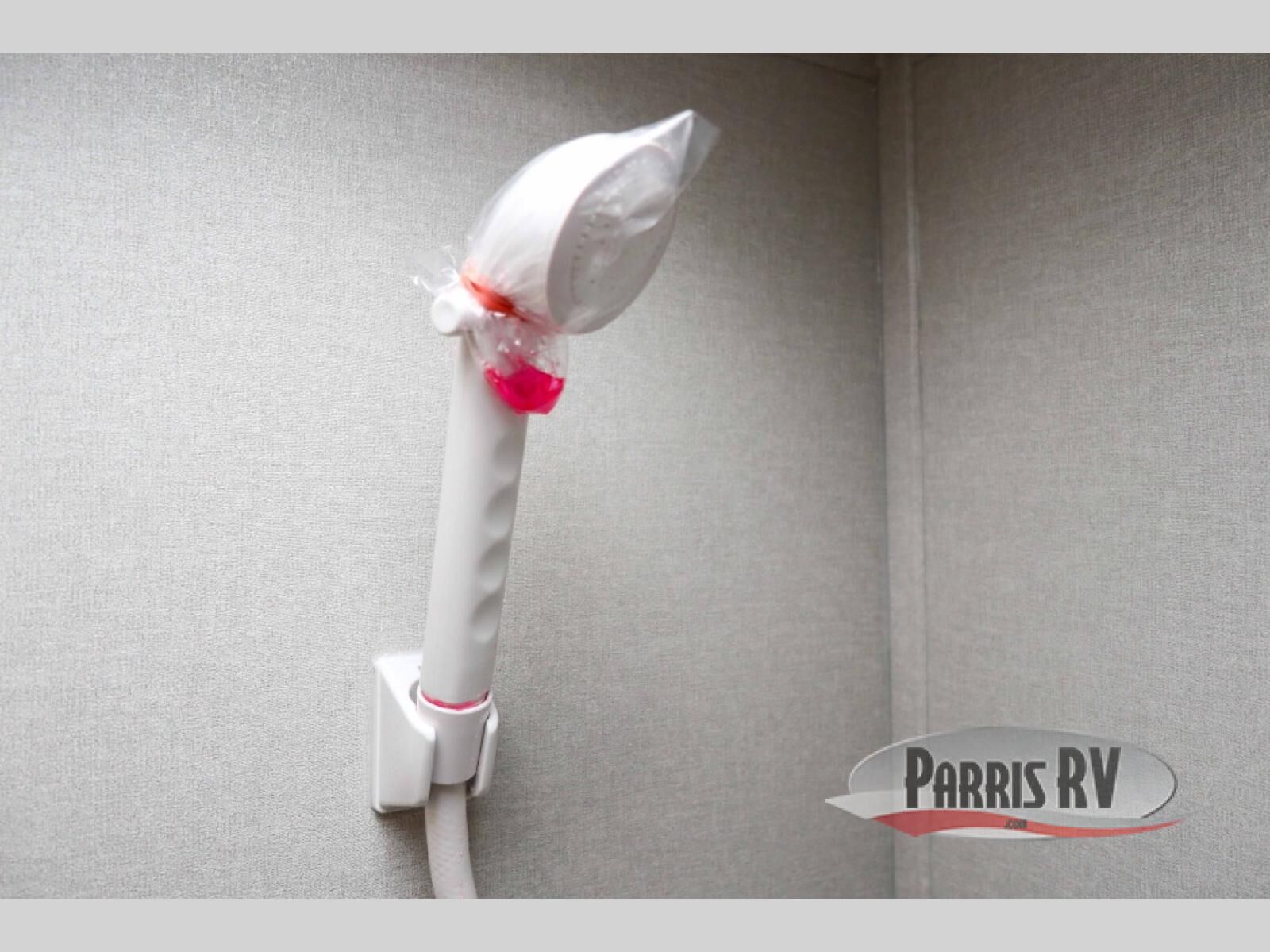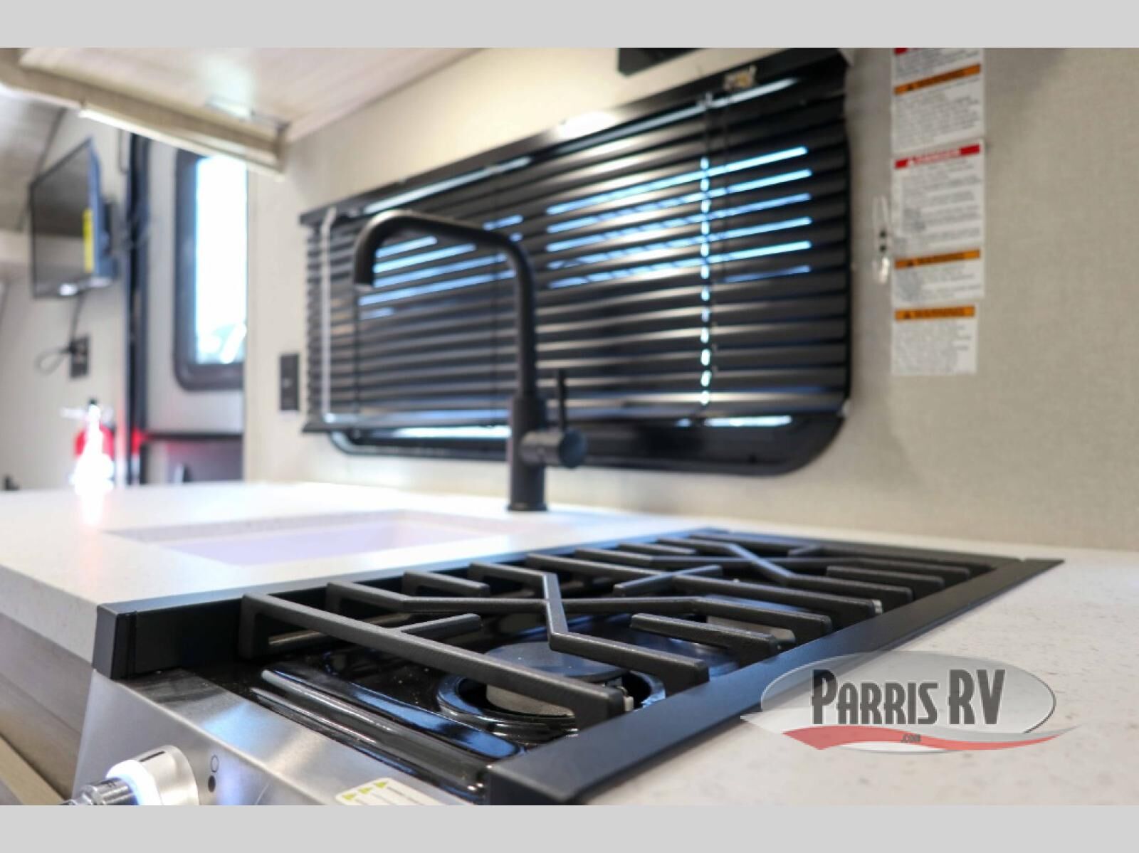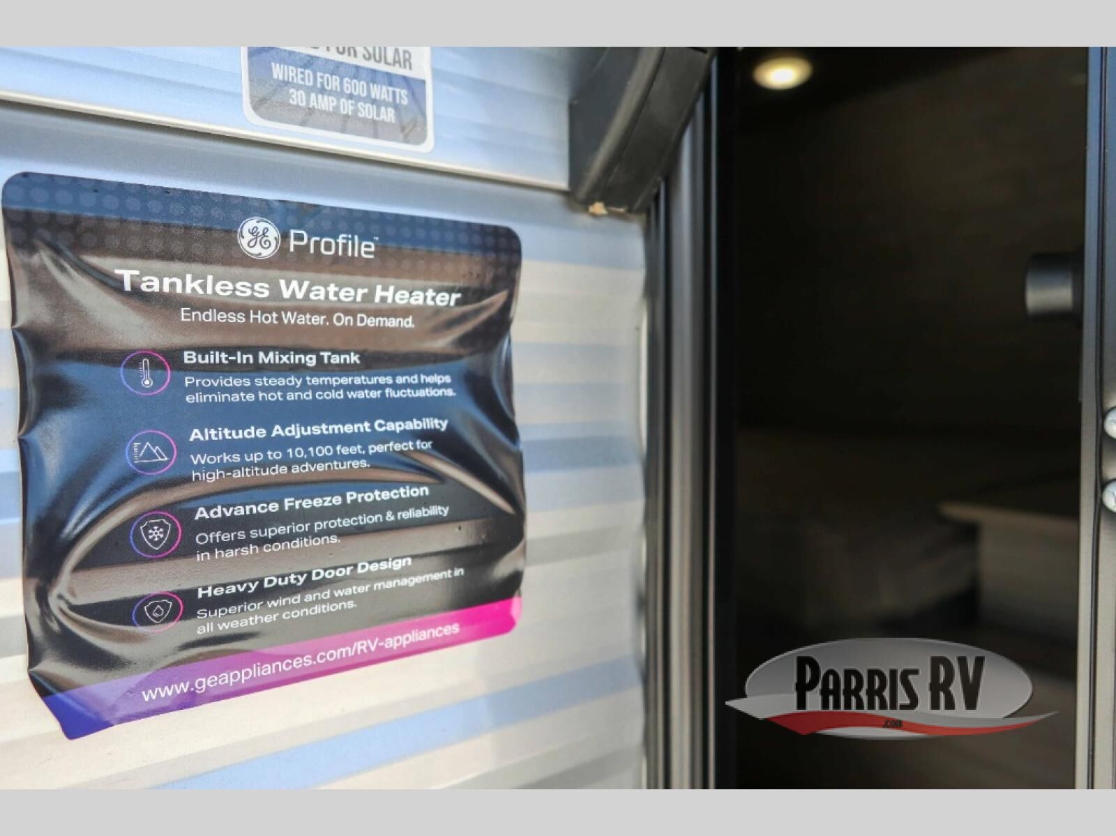The perfect unit for a cozy weekend retreat for two or three! There is a queen bed up front with overhead storage and more at the foot of the bed to keep your things tidy. The rear of the unit offers a U-shaped dinette with an end table on one end and a handy overhead shelf which is a great spot for meals, watching TV or playing cards and games. A mid-coach bath includes a 36" x 30" shower and toilet with foot flush, plus a storage shelf for necessities. This model also includes a GE two burner cooktop, a GE stainless microwave oven, plus a 3.3 cu. ft. 12V refrigerator to keep food fresh!