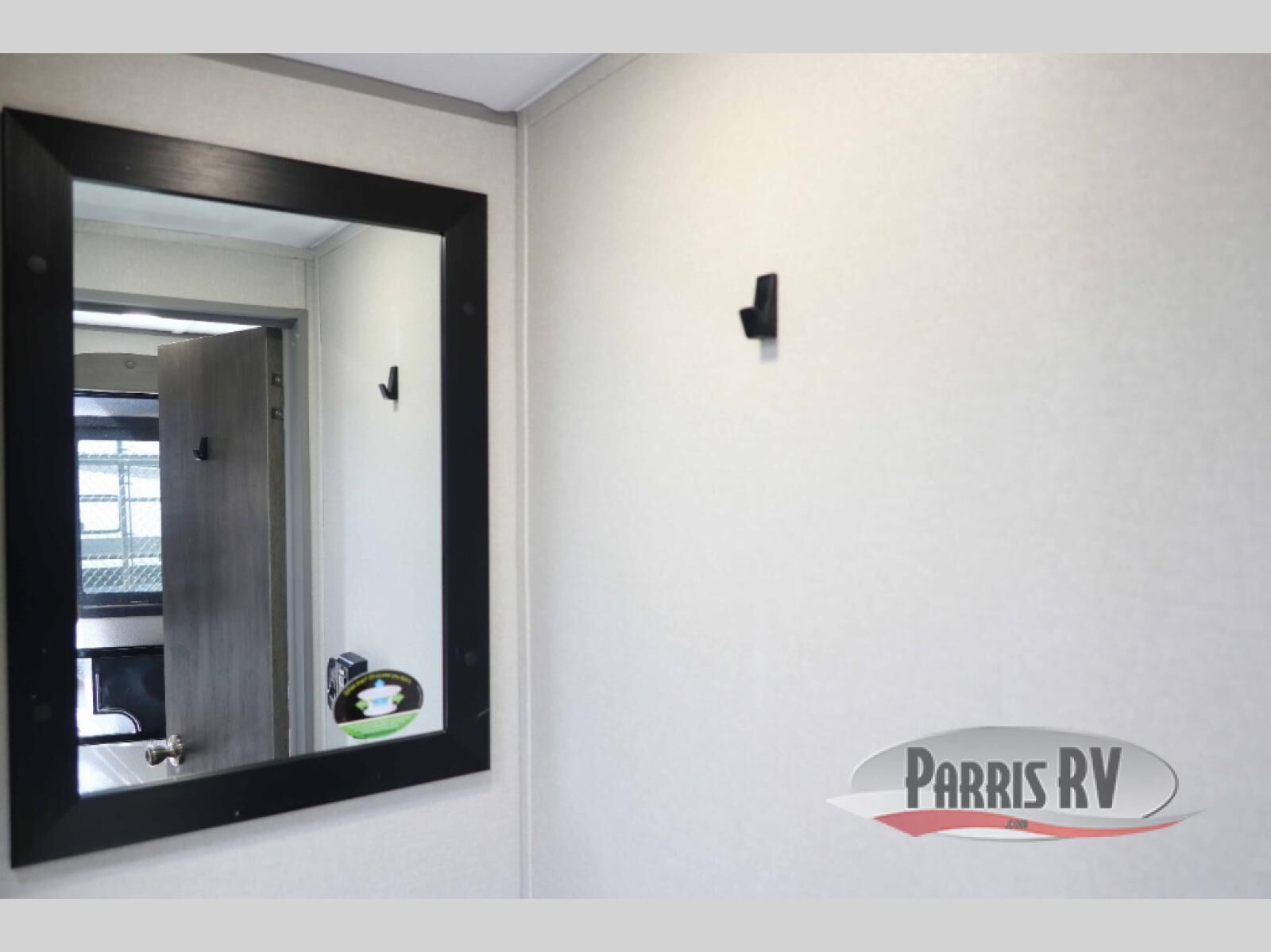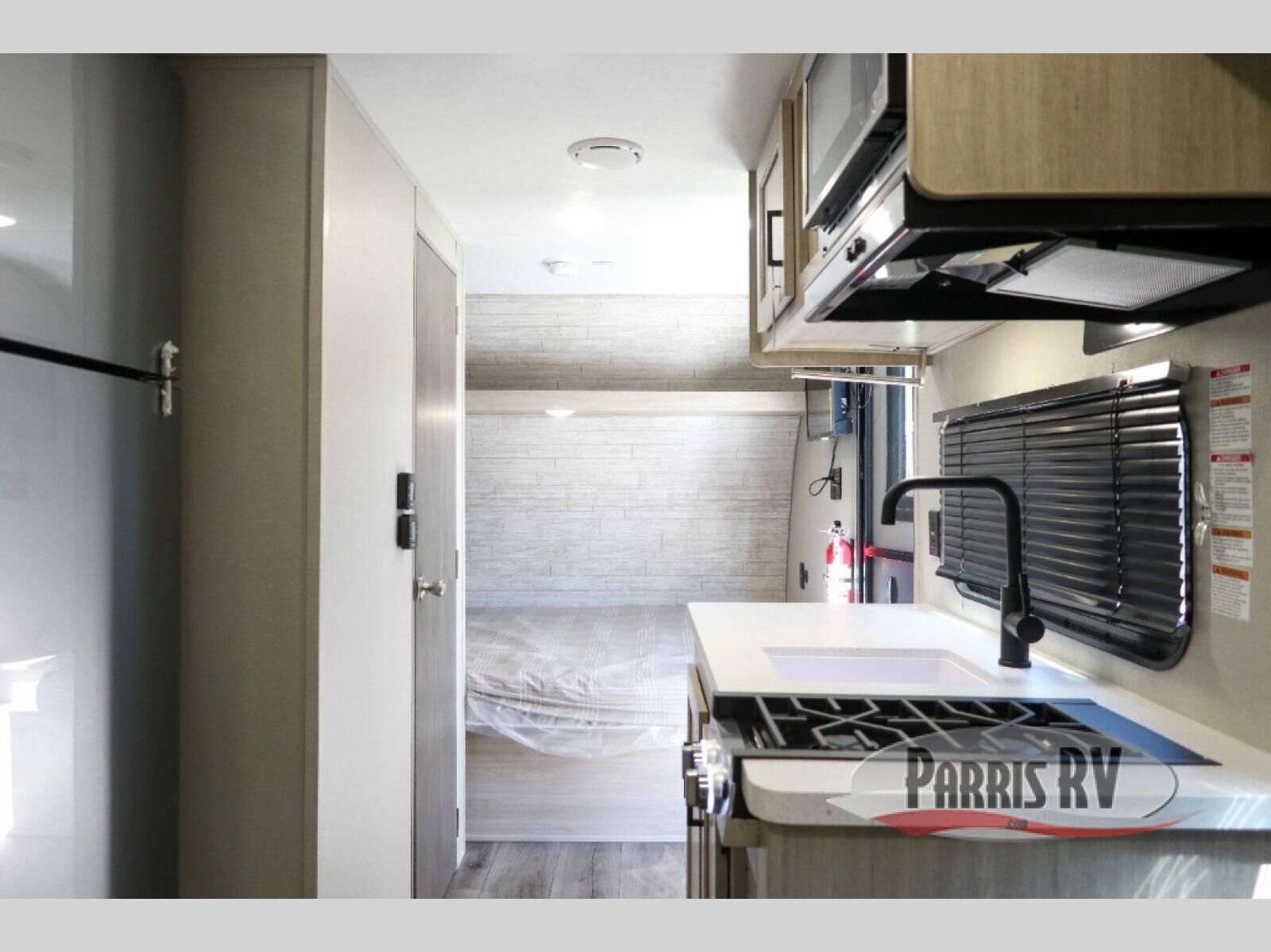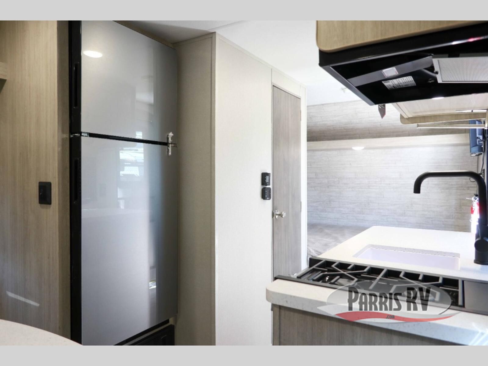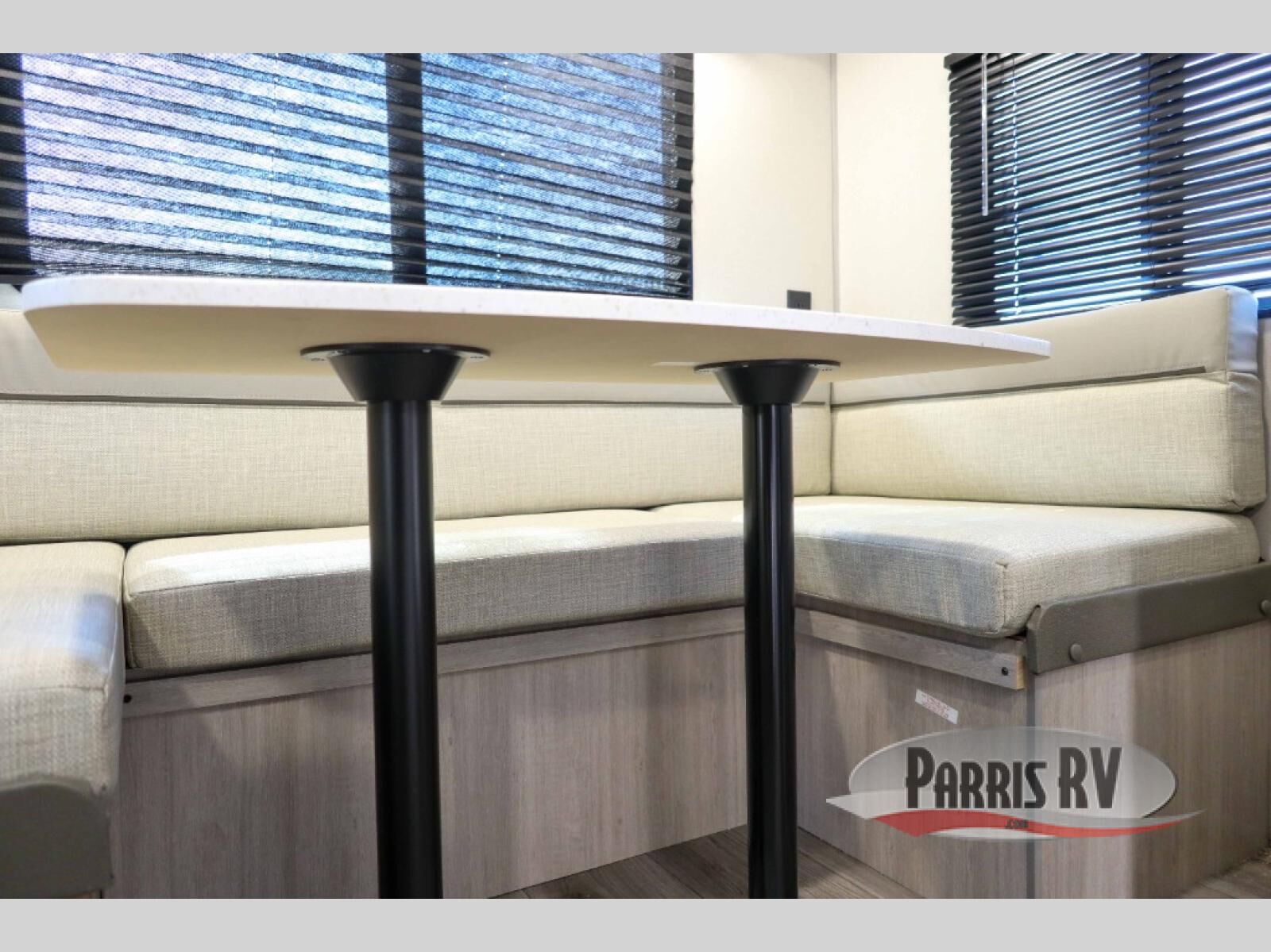 The perfect unit for a cozy weekend retreat for two or three! There is a queen bed up front with overhead storage and more at the foot of the bed to keep your things tidy. The rear of the unit offers a U-shaped dinette with an end table on one end and a handy overhead shelf which is a great spot for meals, watching TV or playing cards and games. A mid-coach bath includes a 36" x 30" shower and toilet with foot flush, plus a storage shelf for necessities. This model also includes a GE two burner cooktop, a GE stainless microwave oven, plus a 3.3 cu. ft. 12V refrigerator to keep food fresh!