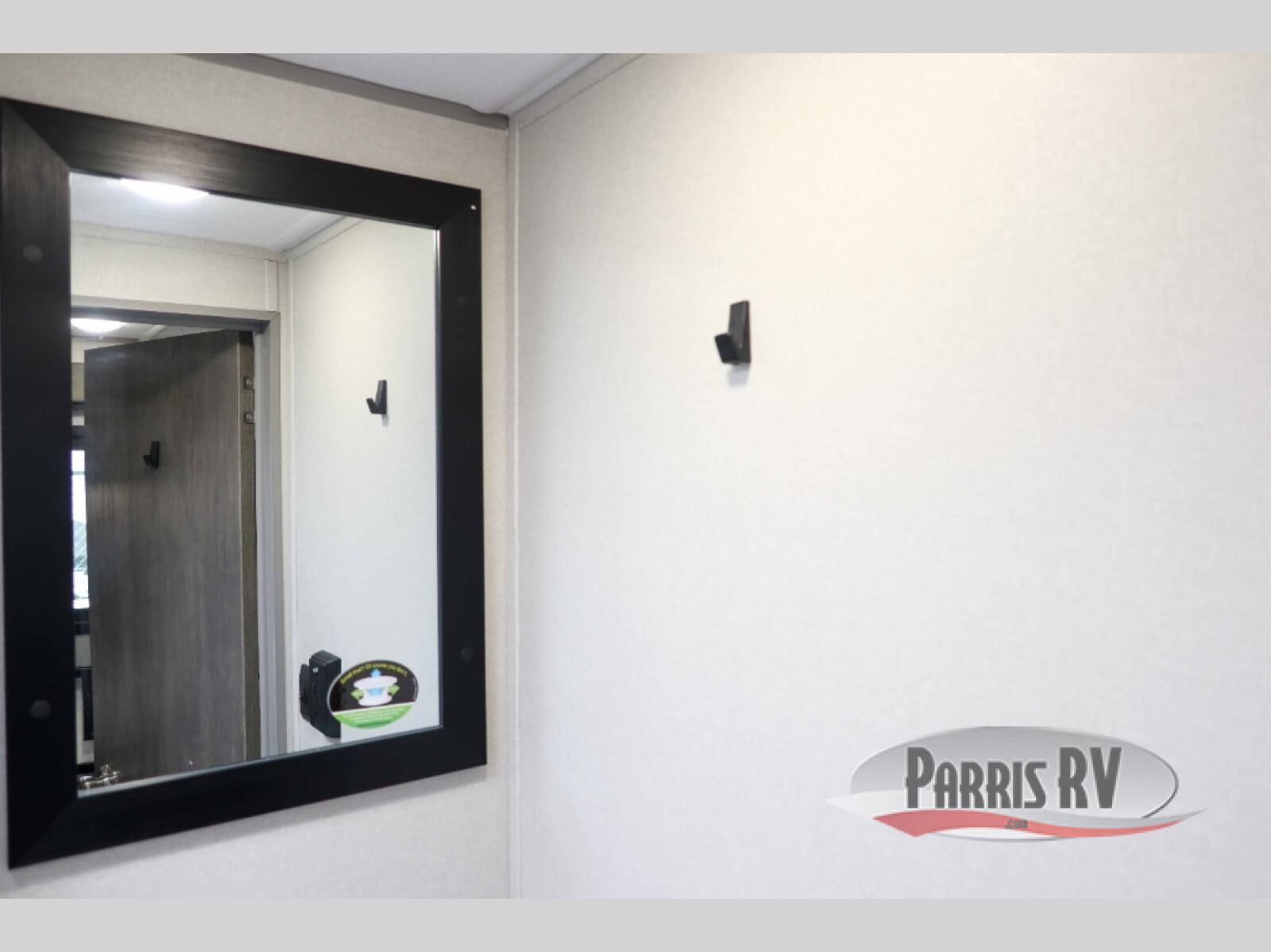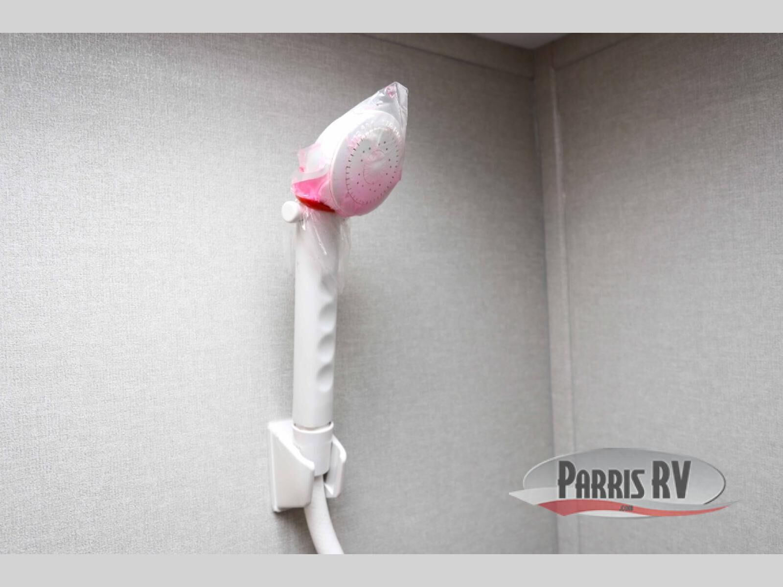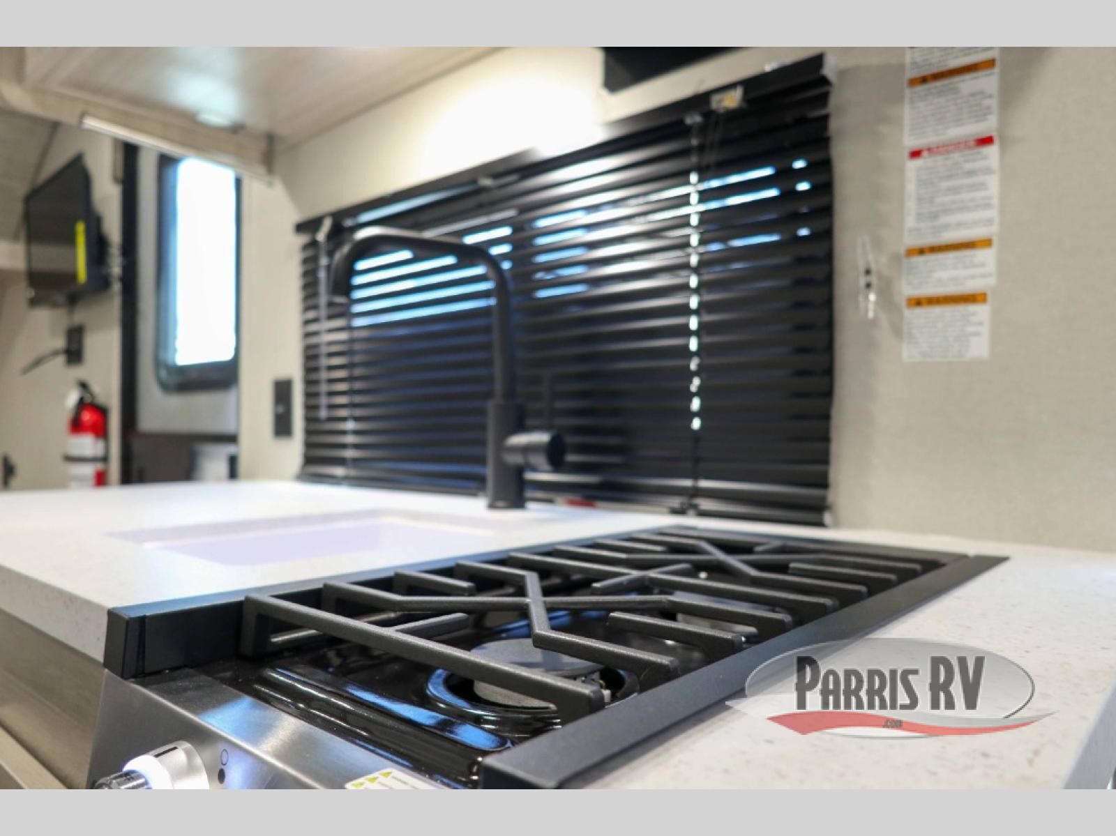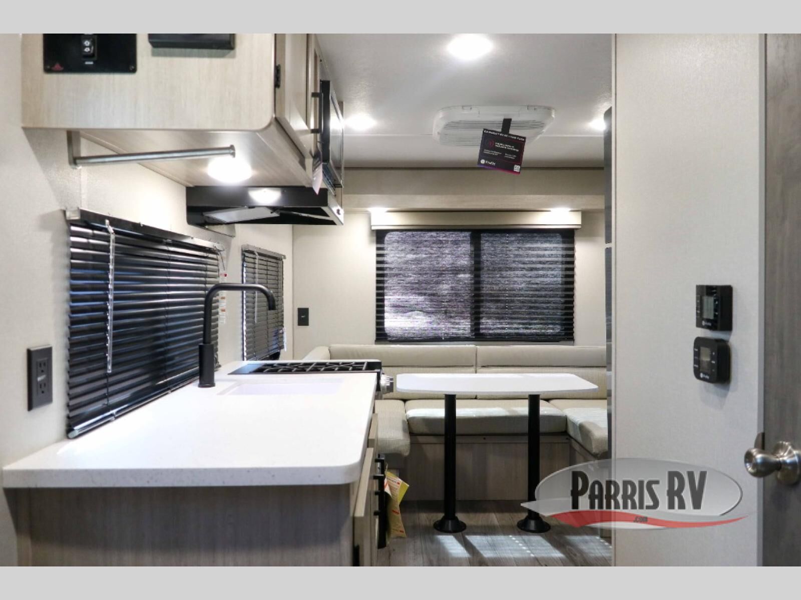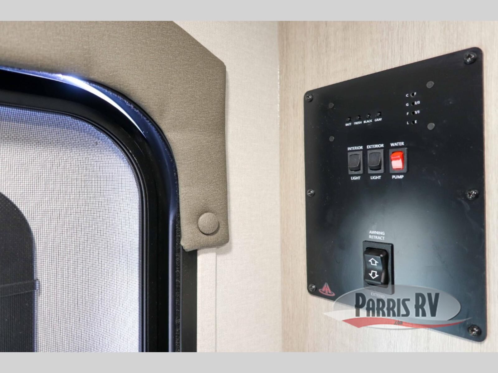 The perfect unit for a cozy weekend retreat for two or three! There is a queen bed up front with overhead storage and more at the foot of the bed to keep your things tidy. The rear of the unit offers a U-shaped dinette with an end table on one end and a handy overhead shelf which is a great spot for meals, watching TV or playing cards and games. A mid-coach bath includes a 36" x 30" shower and toilet with foot flush, plus a storage shelf for necessities. This model also includes a GE two burner cooktop, a GE stainless microwave oven, plus a 3.3 cu. ft. 12V refrigerator to keep food fresh!