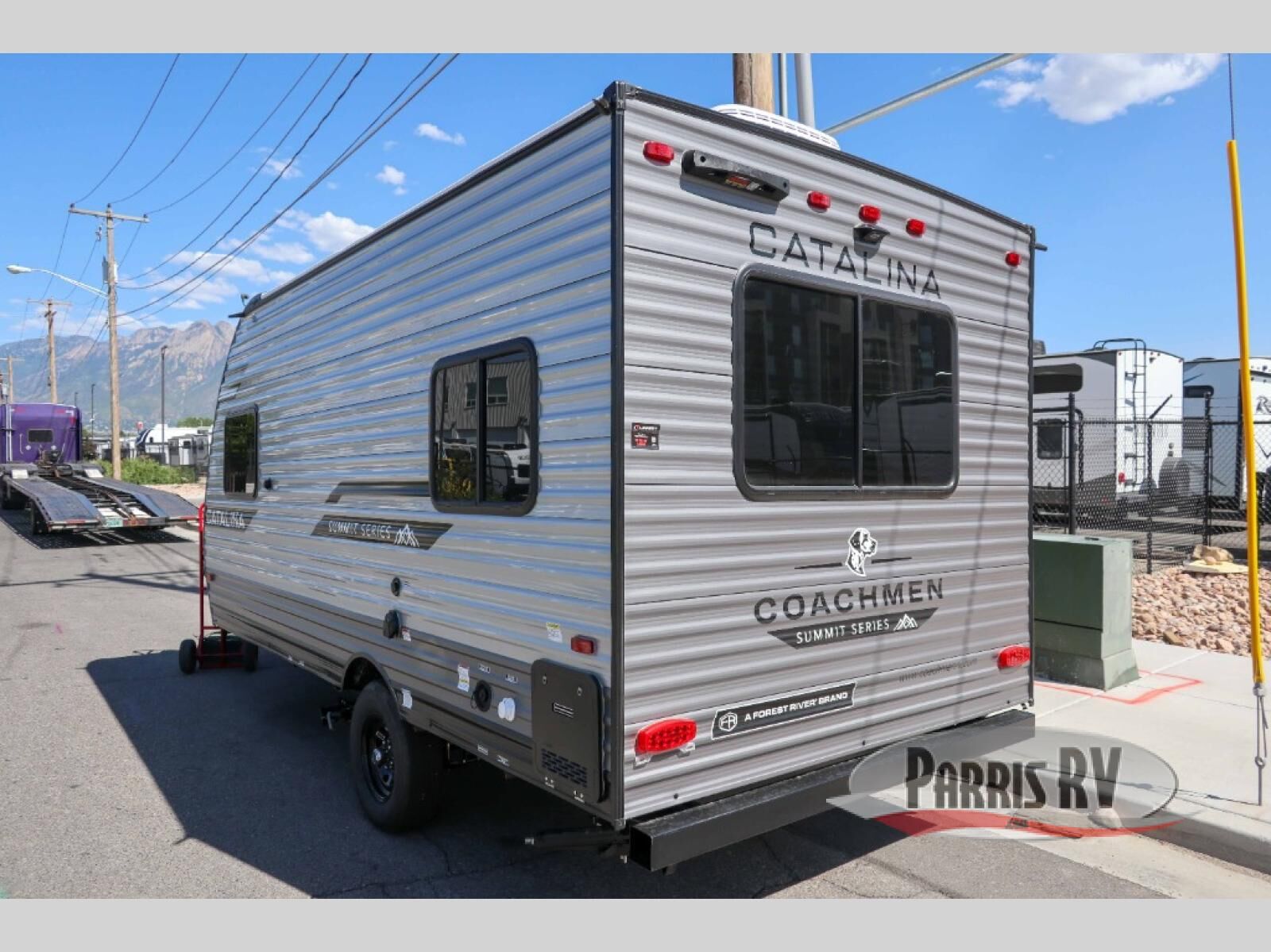 With any Catalina Summit Series 7' by Coachmen RV, you can create an easier adventure with the versatility and simplicity of the shorter lengths and lighter weights! Each includes a premium exterior graphics package, a smooth HD aluminum radius front, and EZ lube axles with leaf spring suspension. The exterior offers a heavy duty standard tongue jack, a diamond plate rock guard to protect against road debris, exterior RG-6 coax cabling and satellite prep, rear view camera prep, and flush mount baggage doors with radius corners for your outdoor gear. Inside, you will enjoy a premium JBL interior speaker, USB charging ports, seamless Thermofoil countertops throughout, a deep basin farm style sink for easy cleanup, and GE kitchen appliances. It's time to choose an affordable and maneuverable single axle trailer today!
