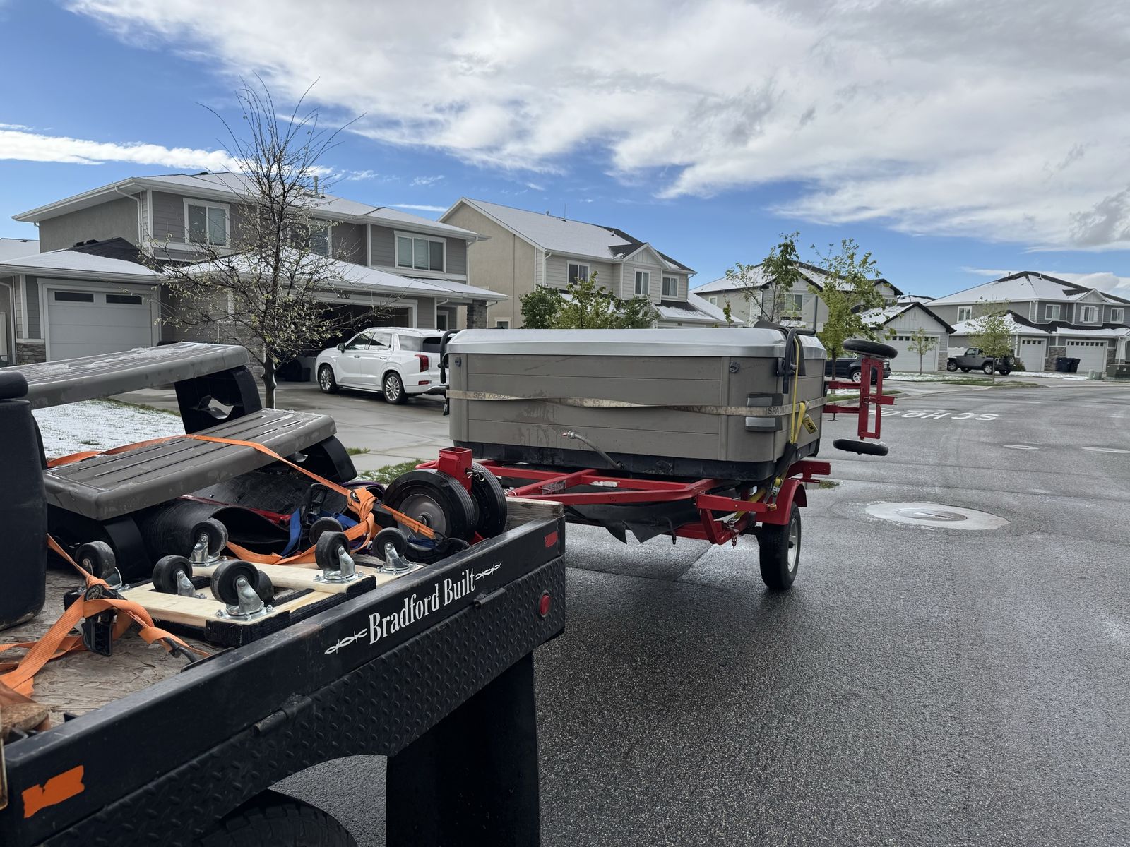 Hot tub and Spa moving. If you need a tub moved I will match any reasonable bids. Move starting at 300$. Or if you are wanting to do it yourself I will rent you my trailer and dolly and all other equipment, 175 $. Call or text with any questions..