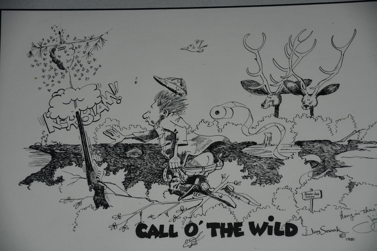 This "CALL OF THE WILD" SIGNED JIM SNOOK 1981 CARTOON is from a smoke free home. Questions??? Please ask. We are located in Plain City. Cash only please.