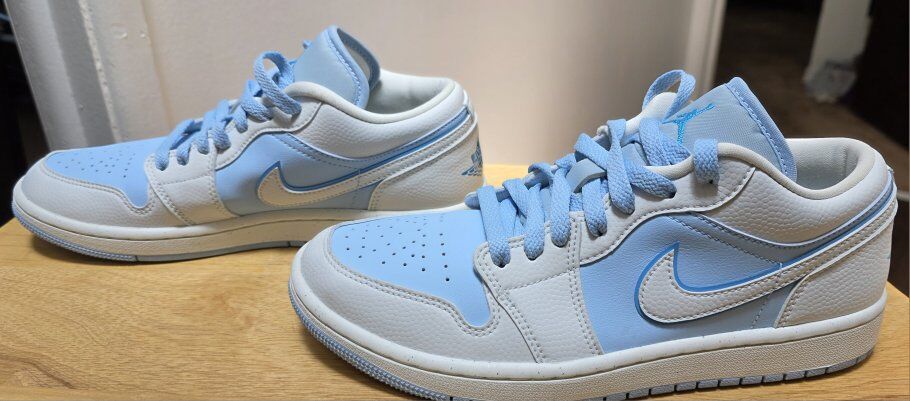 Pre-Owned Wmns Air Jordan 1 Low SE 'Reverse Ice Blue' Size 10. Almost new, no BOX, see all photos, text message is better, see my other adds, thank you.