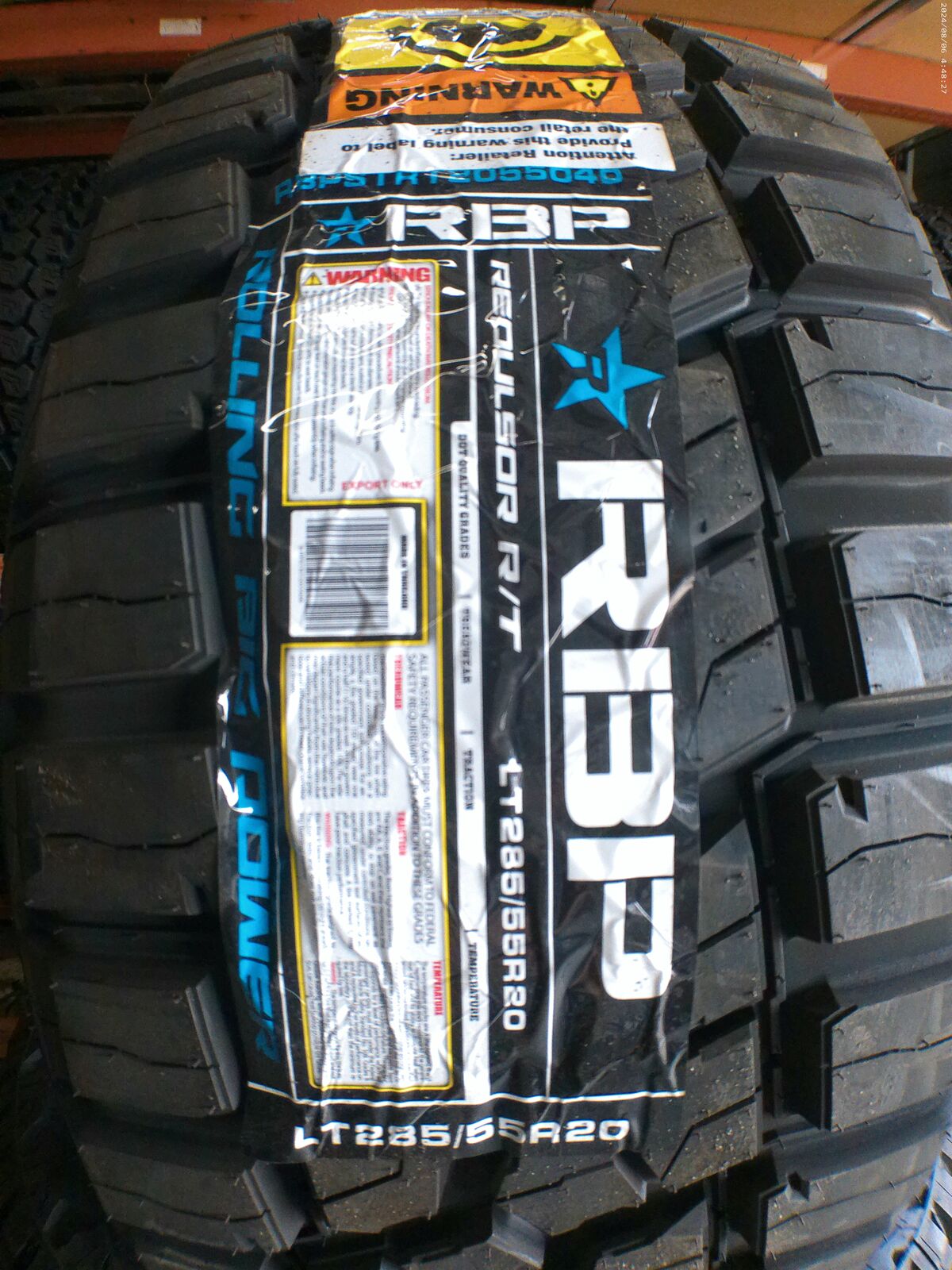 ApplePayNEW SET OF LT285/55R20 RBP REPULSOR R/T LOAD RANGE E 10PLY. AWESOME DEAL. FOR $949.00 INCLUDES YOUR INSTALATION AND TAX, HABLAMOS ESPANOL.