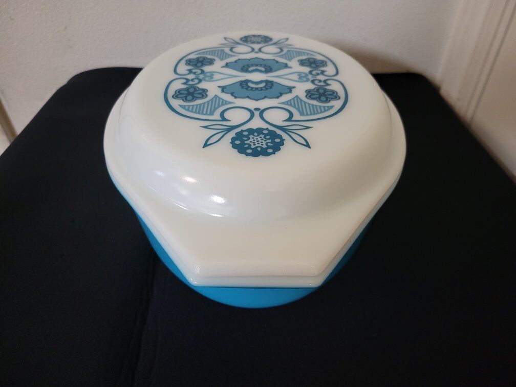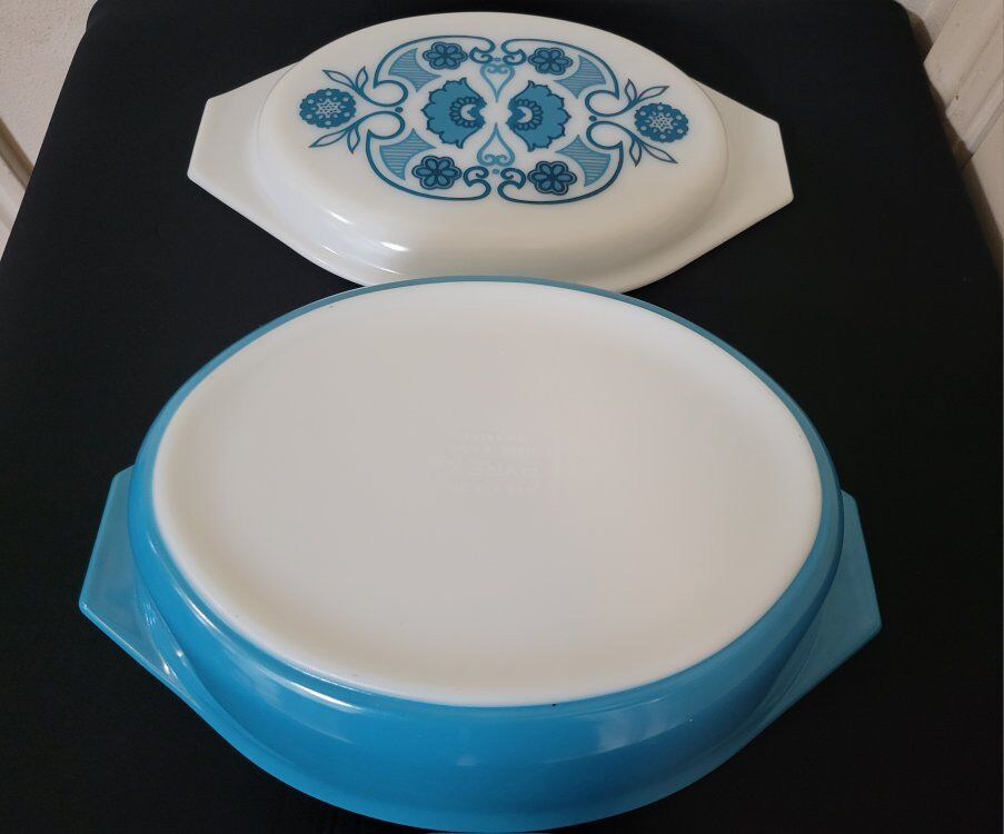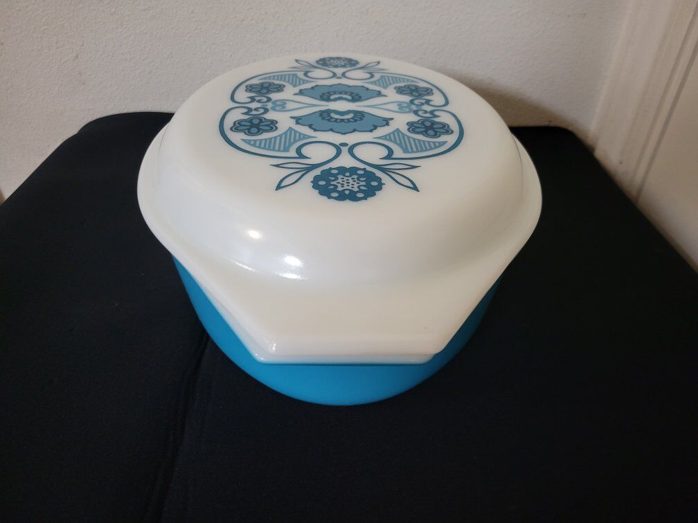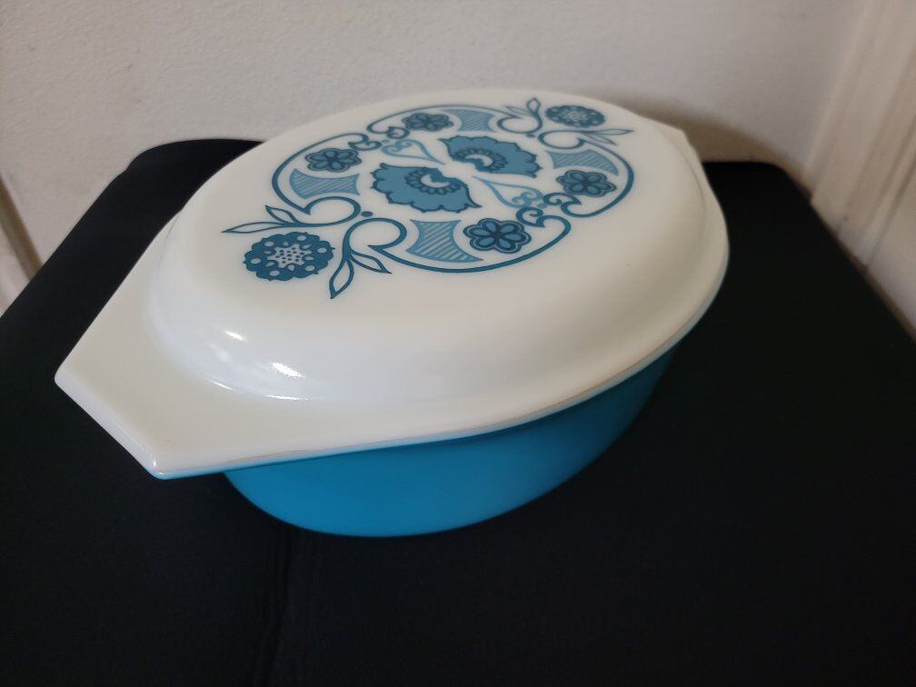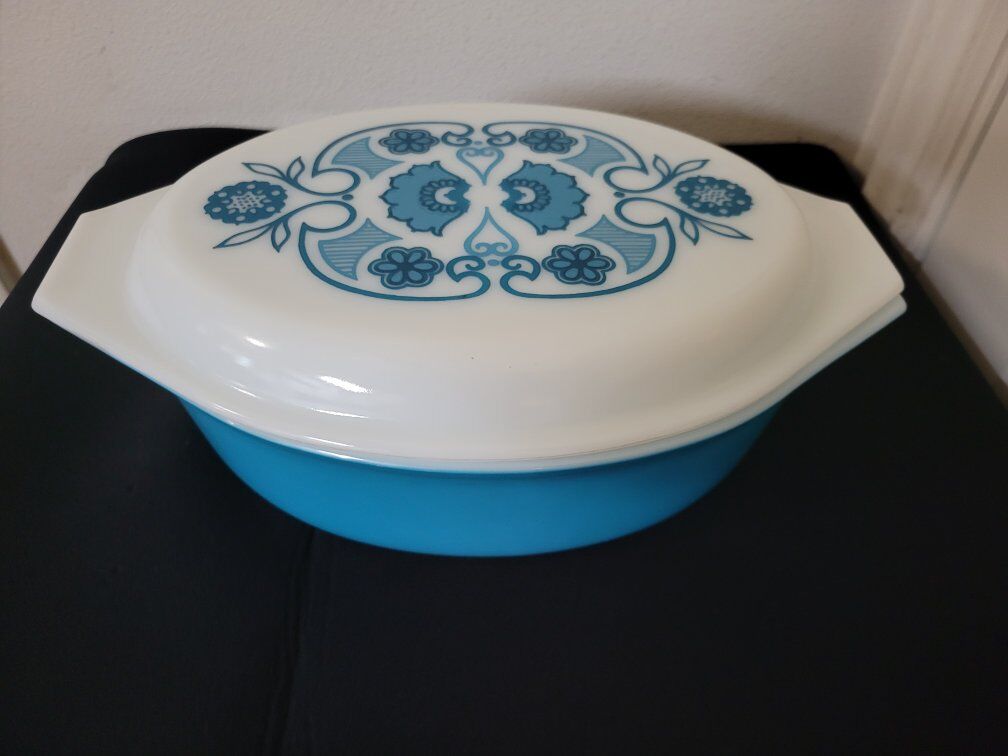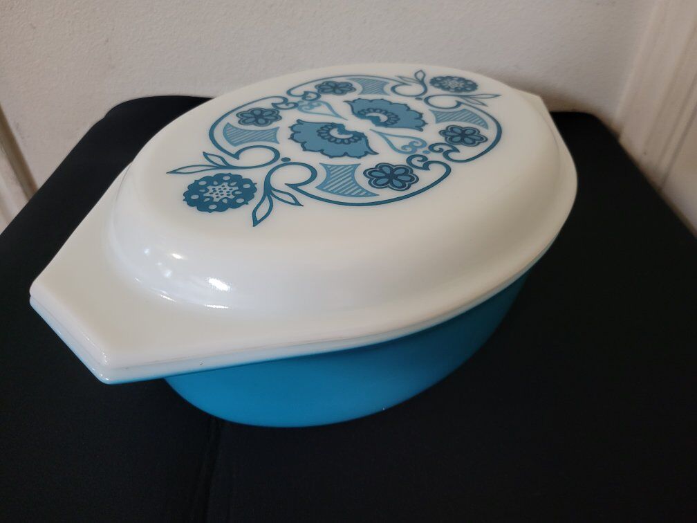 VenmoVintage Pyrex 045 Blue Horizon Oval Covered Casserole Dish with Lid 2 1/2 Qt. Made in USA. inf 702 3558824
