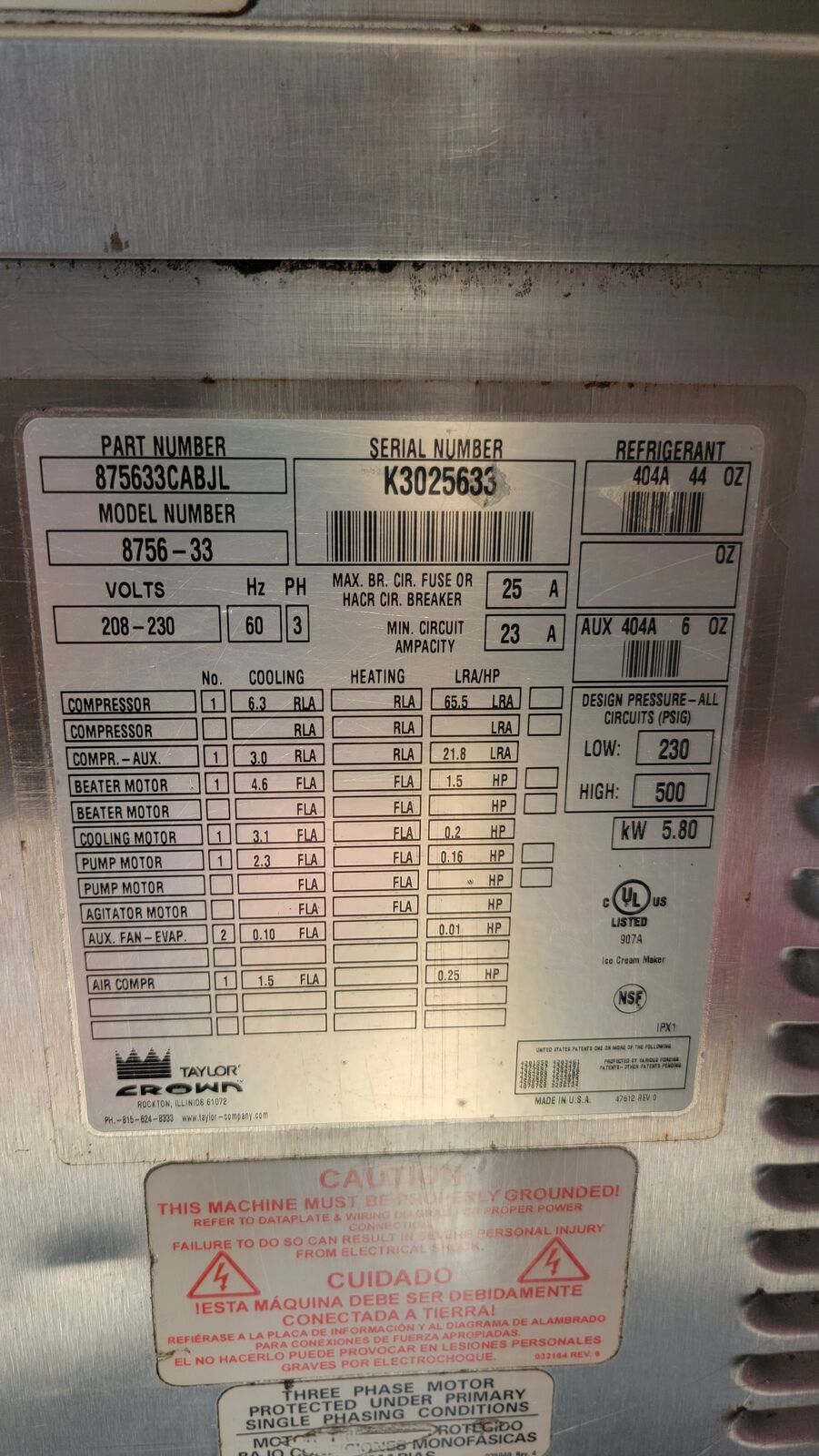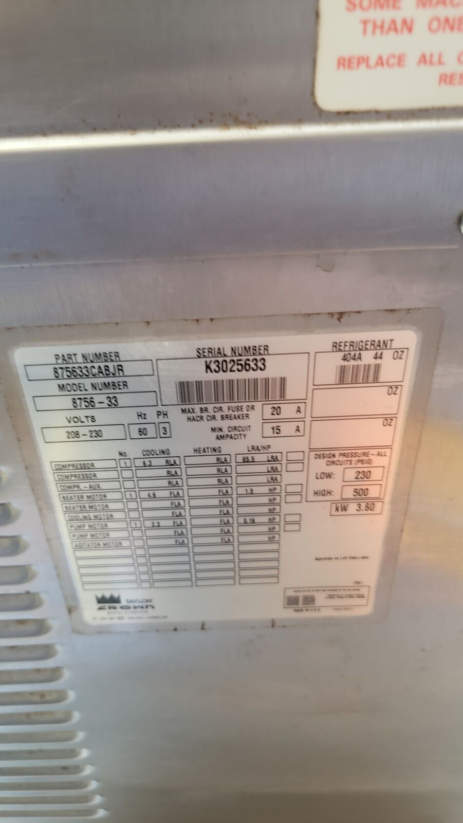 Venmo2003 Taylor Soft Serve model 8756, 3 phase power, AIR Cooled Ice Cream Machine, High volume capacity. with Coaxal pumps. NOT Horizon old pumps. Coaxal Pumps are better!
