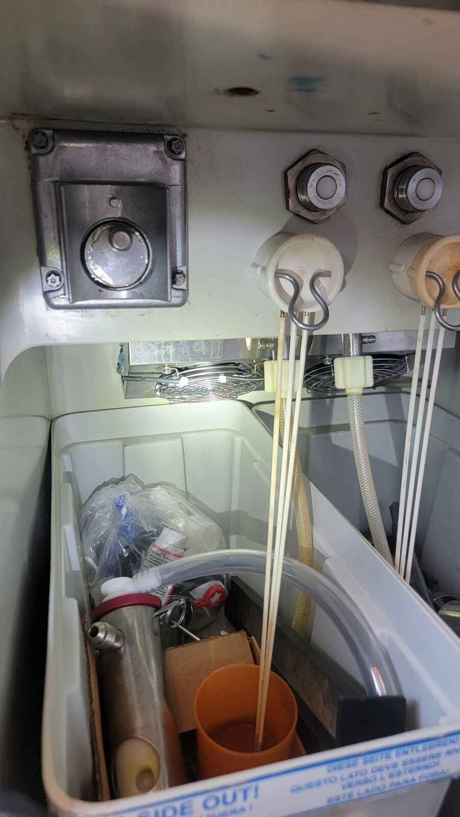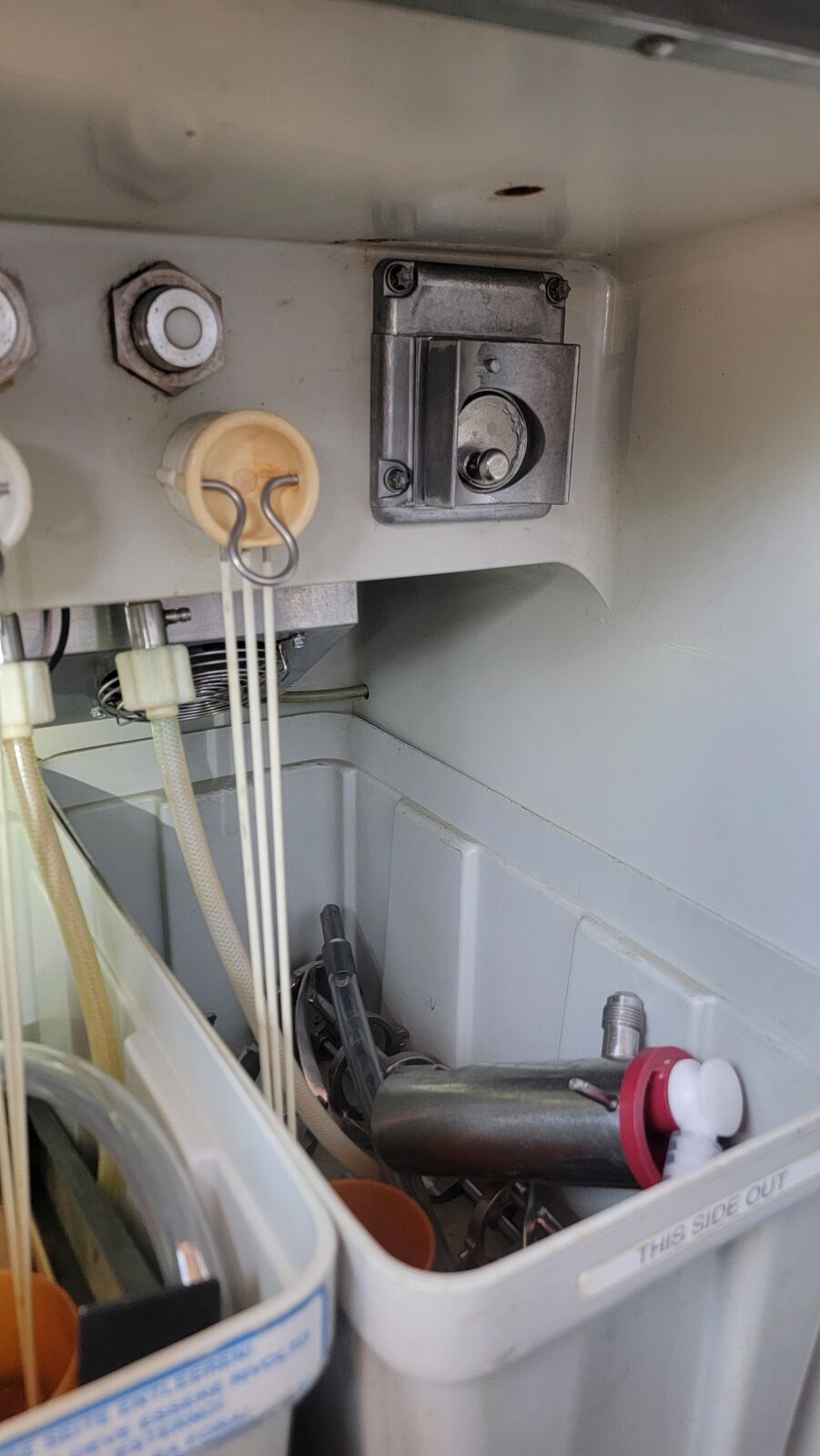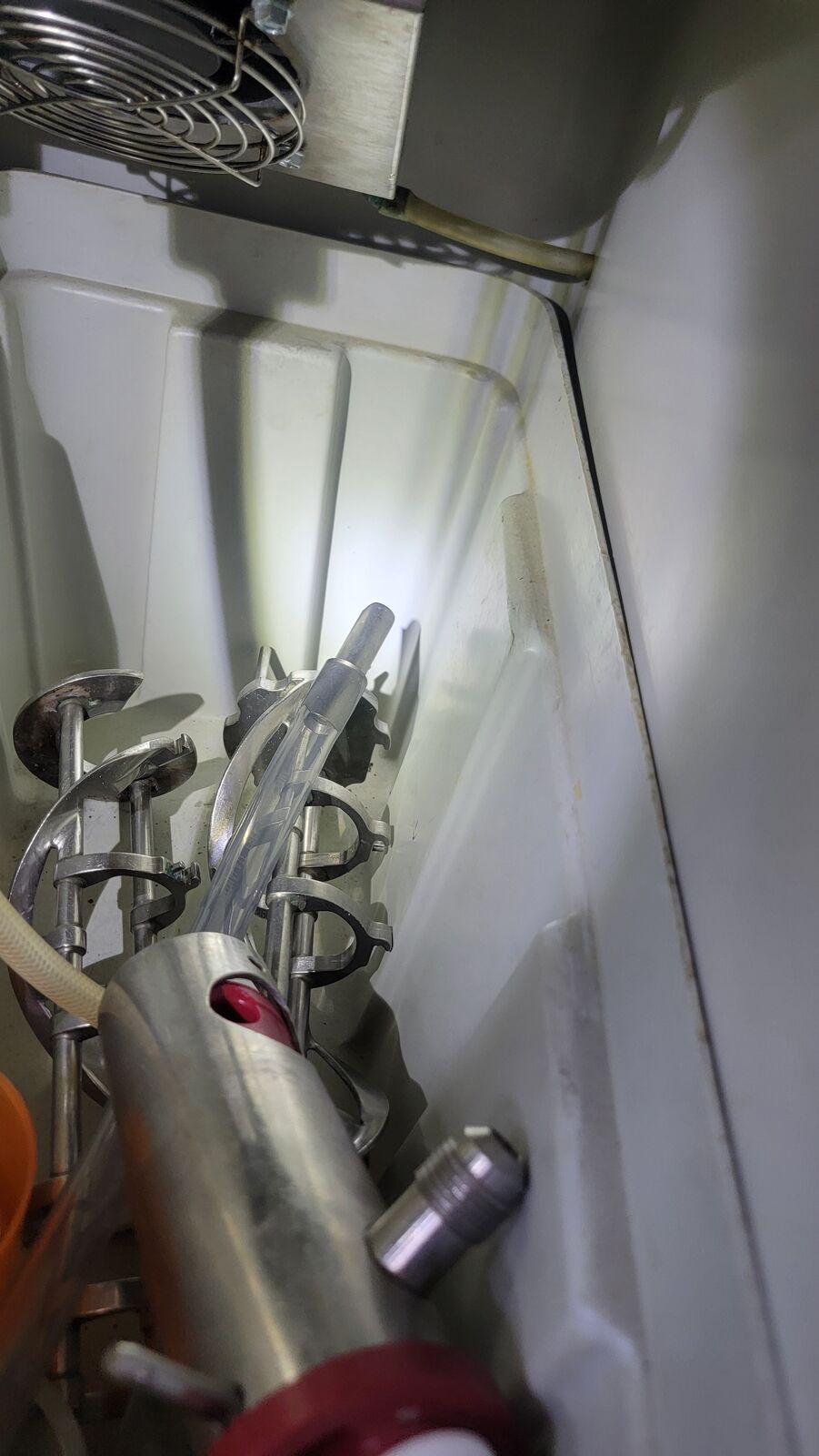 Tested freezing of barrels, and lower cabinet cooling. All seems to be working, as seen in the photos.