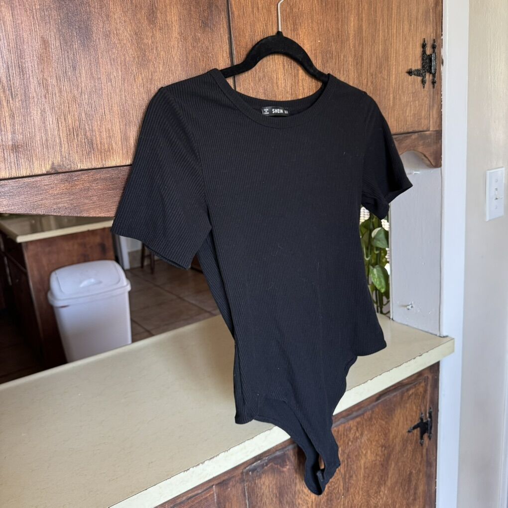 SHEIN Black Ribbed Bodysuit Size Small