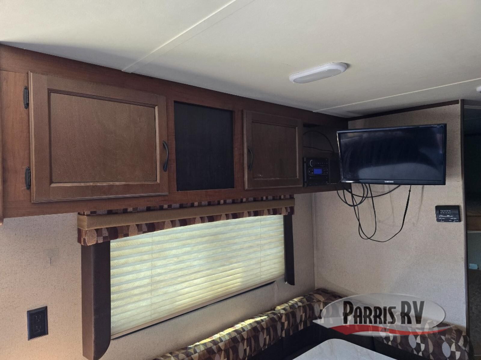 You will find plenty of overhead cabinets throughout the travel trailer as well as exterior storage. Outside you can even choose a Chil N' Stor option which offers a refrigerator.