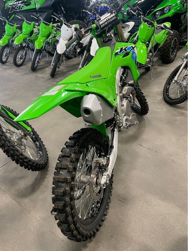 Engine Type: Single-Cylinder Displacement: 27.4 cu. in. (449 cc) Bore and Stroke: Bore: 3.78 in. (96 mm); Stroke: 2.45 in. (62.1 mm) Cooling: Liquid Compression Ratio: 12.5:1 Fuel System: Gas Front Suspension: Inverted Fork Front Brakes: Disc Front Tire: Dunlop® Geomax MX3SF: 80/100-21 51M Rear Suspension: Twin Sided Swing Arm Rear Brakes: Disc Rear Tire: Dunlop® Geomax MX3S: 120/80-19 63M Dry Weight: 283.3 lb. (128.5 kg.) Fuel Capacity: 1.64 gal. (6.2 L) Wheelbase: 58.3 in. (1480.8 mm) Ground Clearance: 13.6 in. (345.4 mm) Seat Height: 37.8 in. (960 mm) Trail: 4.5 in. (114.3 mm) Rake: 26.6 Transmission: Manual