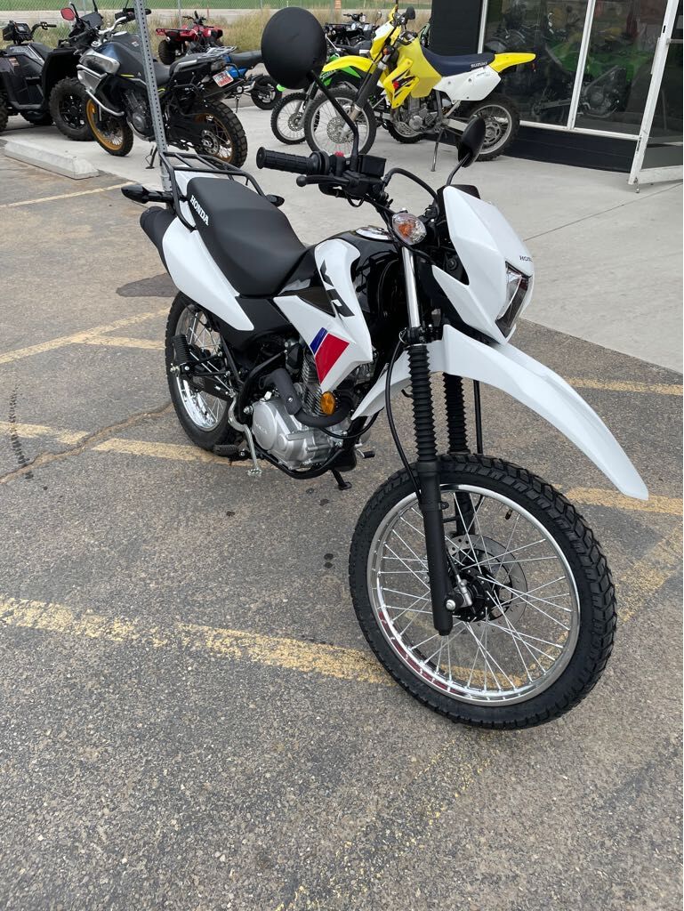 Engine Type: Single-Cylinder Displacement: 9.1 cu. in. (149 cc) Bore and Stroke: Bore: 2.26 in. (57.3 mm); Stroke: 2.28 in. (57.8 mm) Cooling: Air Compression Ratio: 9.5:1 Fuel System: Gas Transmission: Manual Front Suspension: Telescopic Fork Rear Suspension: Twin Sided Swing Arm Front Brakes: Hydraulic Disc Rear Brakes: Drum Front Tire: 90/90-19 Rear Tire: 110/90-17 Wheelbase: 53.5 in. (1359 mm) Seat Height: 32.8 in. (833 mm) Rake: 27 Trail: 4.1 in. (104 mm) Fuel Capacity: 2.8 gal. (10.6 L) Speedometer: Standard Odometer: Standard