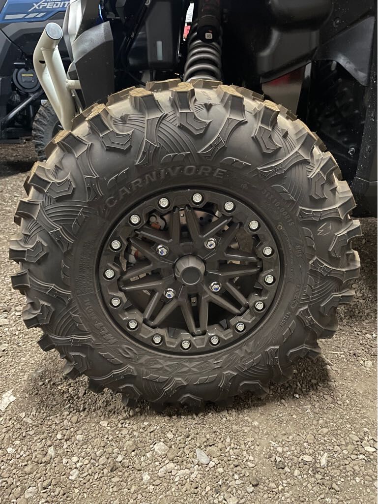 eS Edition color and graphics Engine Type: Parallel Twin Displacement: 60.9 cu. in. (999 cc) Bore and Stroke: Bore: 3.62 in. (92 mm); Stroke: 2.96 in. (75.1 mm) Cooling: Liquid Compression Ratio: 11.5:1 Fuel System: Gas Front Suspension: Independent Double Wishbone Front Brakes: Dual Hydraulic Disc Front Tire: Maxxis® Carnivore: 31 x 10.00R15 8PR Rear Suspension: Independent Rear Brakes: Dual Hydraulic Disc Rear Tire: Maxxis® Carnivore: 31 x 10.00R15 8PR Wheelbase: 98.8 in. (2509.5 mm) Front Travel: 18.6 in. (472.4 mm) Rear Travel: 21.1 in. (535.9 mm) Ground Clearance: 14 in. (355.6 mm) Fuel Capacity: 10.6 gal. (40.1 L) Box Capacity: 351 lbs. (159.2 kg.) Drive System: Continuously Variable (CVT) Speedometer: Standard Tachometer: Standard Odometer: Standard