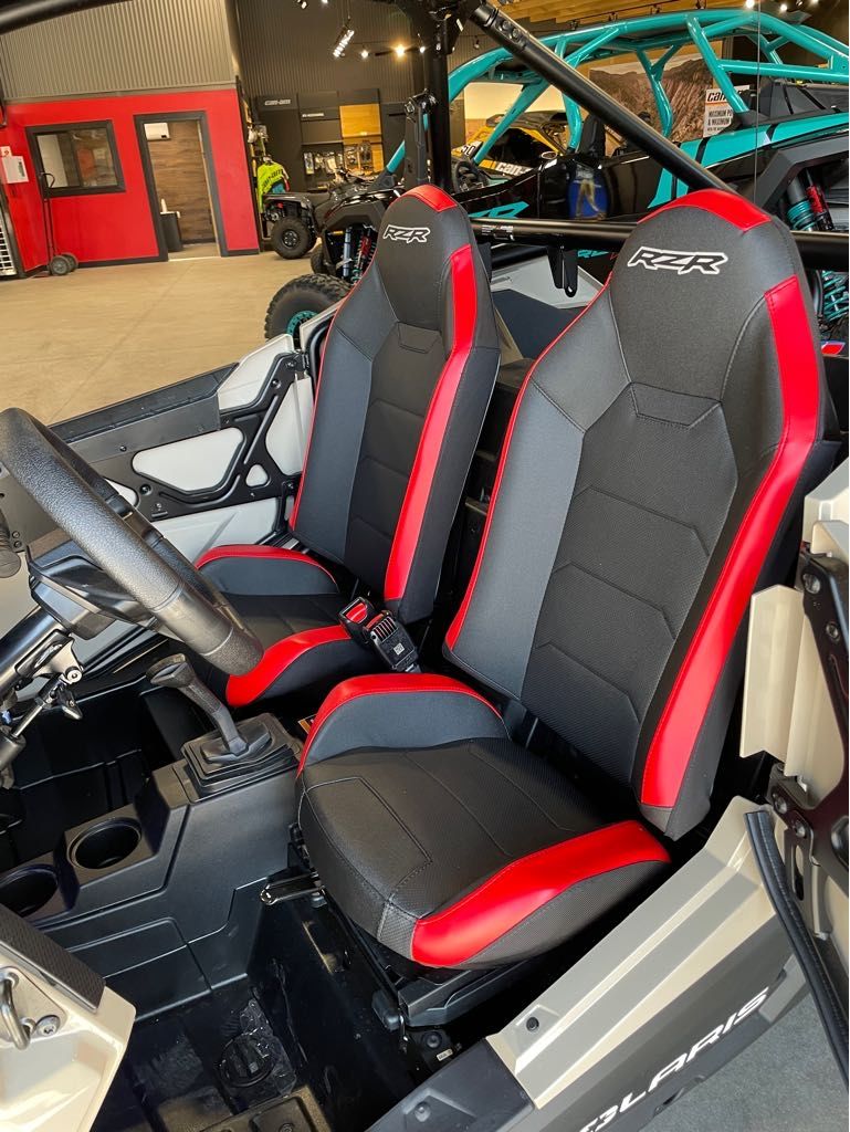 7" Display, Powered by RIDE COMMAND, with Factory Rear Camera Engine Type: Longitudinal Twin Displacement: 53.4 cu. in. (875 cc) Bore and Stroke: Bore: 3.66 in. (93 mm); Stroke: 2.54 in. (64.4 mm) Cooling: Liquid Compression Ratio: 10.5:1 Fuel System: Gas Front Suspension: Independent Double A-Arm Front Brakes: Hydraulic Disc Front Tire: Polaris PXT: 26 x 8-12 Rear Suspension: Independent Double A-Arm Rear Brakes: Hydraulic Disc Rear Tire: Polaris PXT: 26 x 9-12 Dry Weight: 1297 lb. (588 kg.) Wheelbase: 79 in. (2007 mm) Front Travel: 10 in. (254 mm) Rear Travel: 10 in. (254 mm) Ground Clearance: 11 in. (279 mm) Fuel Capacity: 9.5 gal. (35.9 L) Box Capacity: 300 lbs. (136.1 kg.) Towing Capacity: 1500 lb. (680 kg.) Drive System: Continuously Variable (CVT) Speedometer: Standard Tachometer: Standard Odometer: Standard