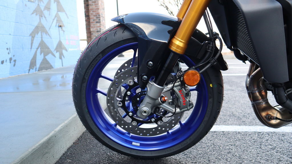 DLC-coated 41mm KYB® forks and Öhlins® rear shock are fully adjustable for preload, rebound, and compression damping—delivering precise response and track-level composure.