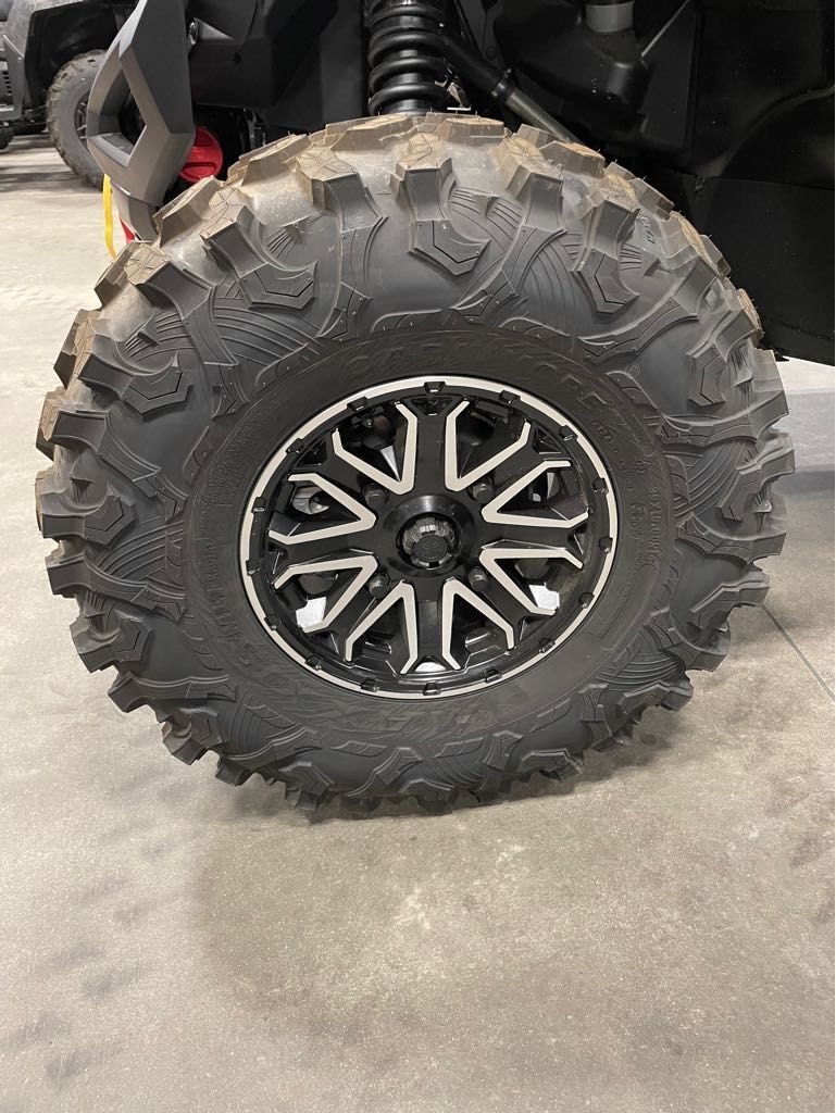 The wide-arc A-arms paired with premium FOX® 2.0 iQS shocks deliver 14.2-inches of travel up front and class-leading 16.9 inches of suspension travel in the rear, up an impressive 3.6 inches on previous RMAX4 models for even more trail-conquering capability. FOX® Intelligent Quick Switch puts the suspension settings in the hands of the driver. Engine Type: Parallel Twin Displacement: 60.9 cu. in. (999 cc) Bore and Stroke: Bore: 3.66 in. (93 mm); Stroke: 2.89 in. (73.5 mm) Cooling: Liquid Compression Ratio: 11.2:1 Fuel System: Gas Front Suspension: Independent Double Wishbone Front Brakes: Dual Hydraulic Disc Front Tire: Maxxis® Carnage 30 X 10.00R-14 Rear Suspension: Independent Double Wishbone Rear Brakes: Dual Hydraulic Disc Rear Tire: Maxxis® Carnage 30 X 10.00R-14 Wheelbase: 118.1 in. (2999.7 mm) Front Travel: 14.2 in. (360.7 mm) Rear Travel: 16.9 in. (429.3 mm) Ground Clearance: 13.8 in. (350.5 mm) Fuel Capacity: 9.2 gal. (34.8 L) Box Capacity: 600 lbs. (272.2 kg.) Towing Capacity: 2000 lb. (907.2 kg.) Drive System: Continuously Variable (CVT) Speedometer: Standard Odometer: Standard