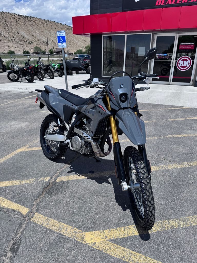 Suzuki 12-month limited warranty. Longer coverage periods with other benefits are available through Suzuki Extended Protection (SEP). Engine Type: Single-Cylinder Displacement: 24.3 cu. in. (398 cc) Bore and Stroke: Bore: 3.54 in. (90 mm); Stroke: 2.47 in. (62.6 mm) Cooling: Liquid / Air Compression Ratio: 11.1:1 Fuel System: Gas Transmission: Manual Front Suspension: Inverted Fork Rear Suspension: Twin Sided Swing Arm Front Brakes: Hydraulic Disc Rear Brakes: Hydraulic Disc Front Tire: IRC GP-400 80/100 R21 51P Rear Tire: IRC GP-400 120/80 R18 62P Wheelbase: 58.9 in. (1495 mm) Seat Height: 36.2 in. (920 mm) Rake: 27.5 Trail: 4.3 in. (109 mm) Fuel Capacity: 2.3 gal. (8.7 L) Speedometer: Standard Odometer: Standard