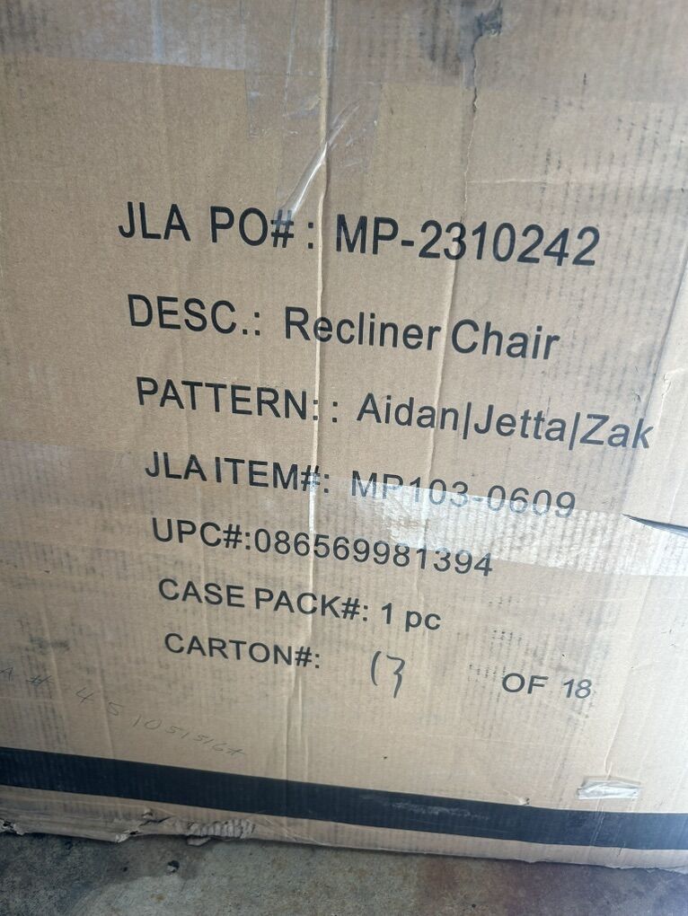 New in Box Madison Park Aidan Push Back Recliner – NEW in Box!