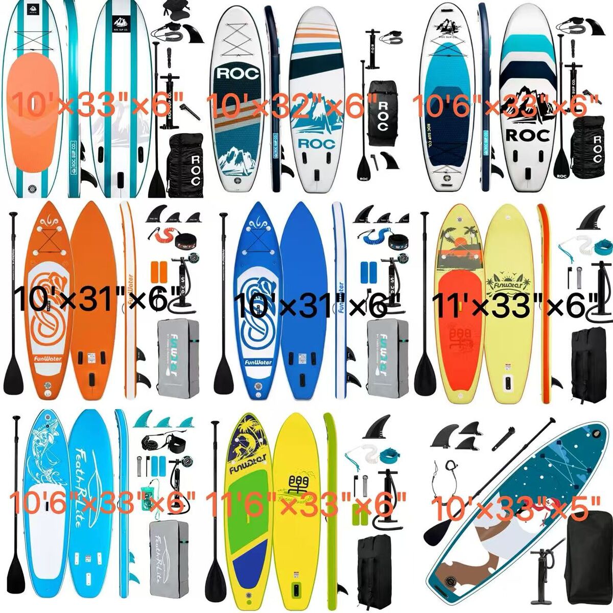 Zelle10ft, 10.6ft,11ft multiple size paddle board available for sale. each color has 3 left.