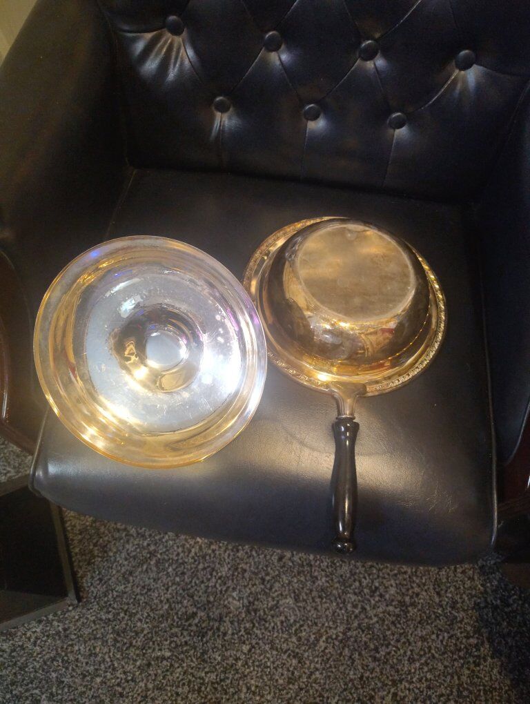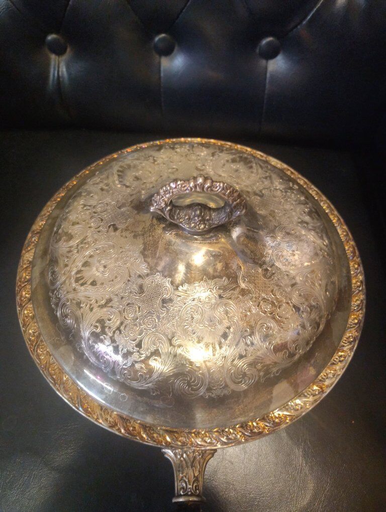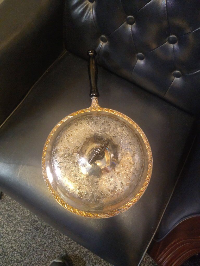Really cool is this vintage silver-plate chafing dish most likely by Rodgers and son and is in really good condition considering it's age and definitely an eye catcher