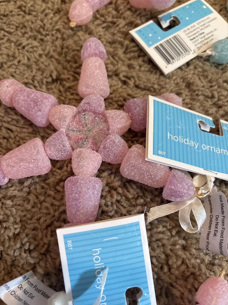 VenmoThree pink ornaments, four turquoise ornaments, new with tags. from target