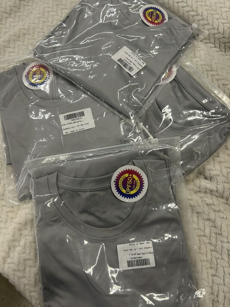 ️ Brand New Roadbox UPF 50+ Long Sleeve Shirts – Grey (Size L) ️ Price: $12 each or $40 for all 4 Pickup in West Valley – First come, first served Cash preferred | Venmo accepted