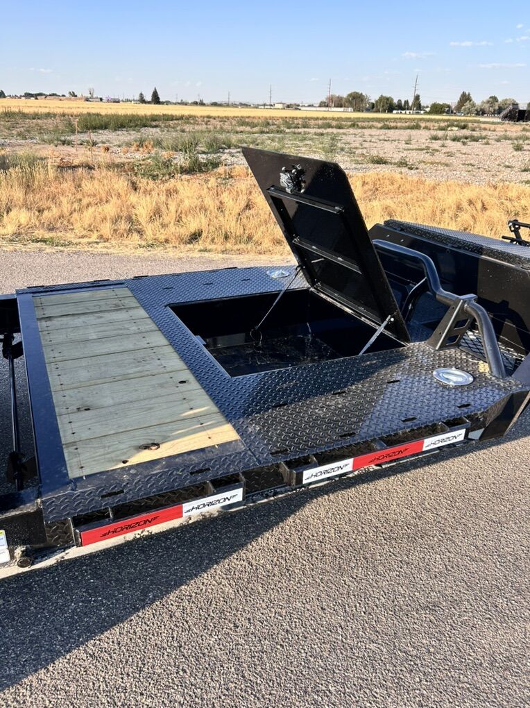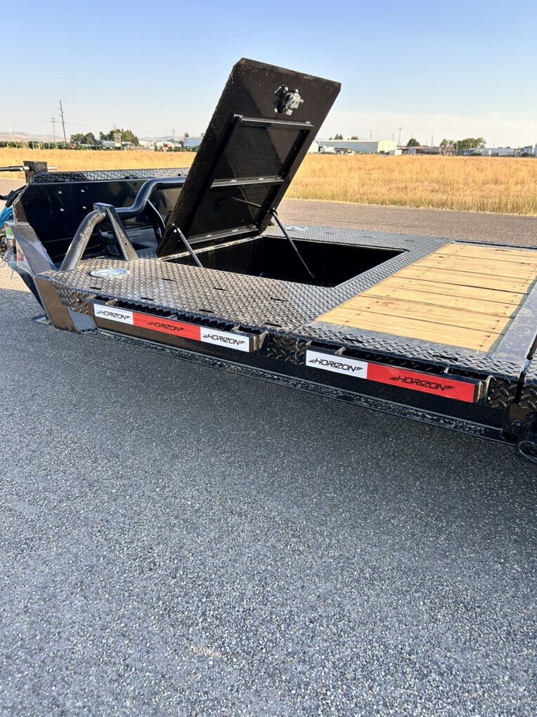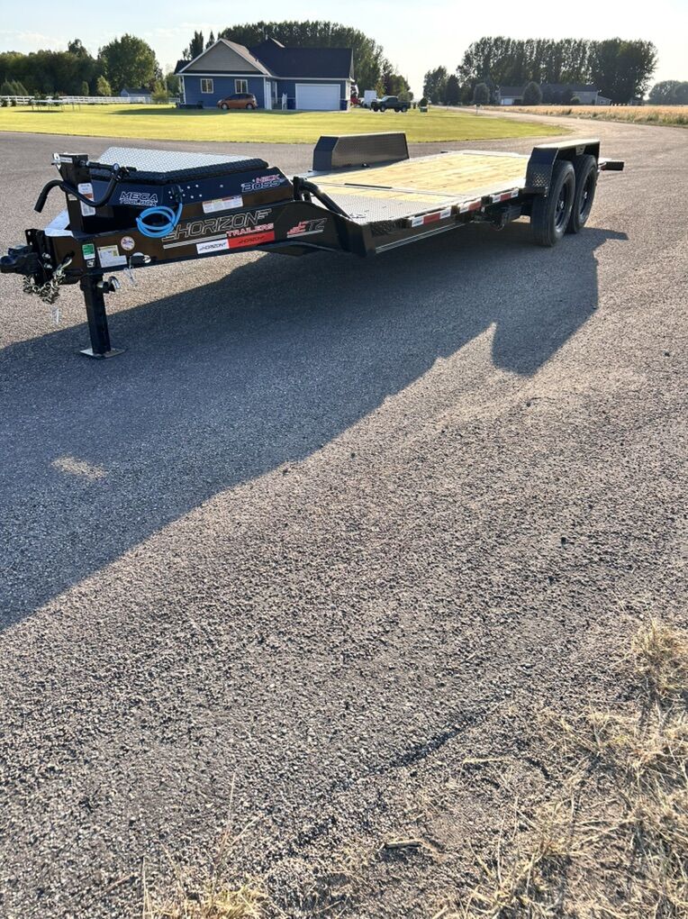 Brand new Horizon Tilt Deck trailer. 22’ long. Lots of storage on the trailer. 14 ply tires. Engineered frame. Financing available. 14k GVWR. Warranty. Ready to go.