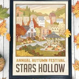 CashApp#164 Stars Hollow Connecticut & Annual Autumn Festival Stars Hollow Unframed Vintage Prints, Set of 2