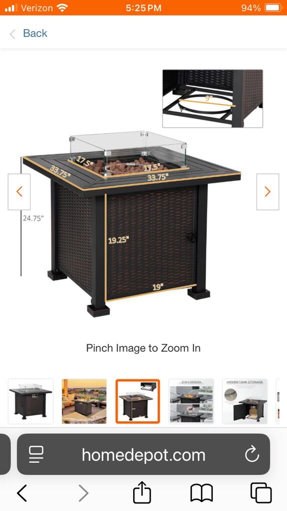 VenmoRectangular Stone Propane Gas Fire Pit Table with Glass Wind Guard