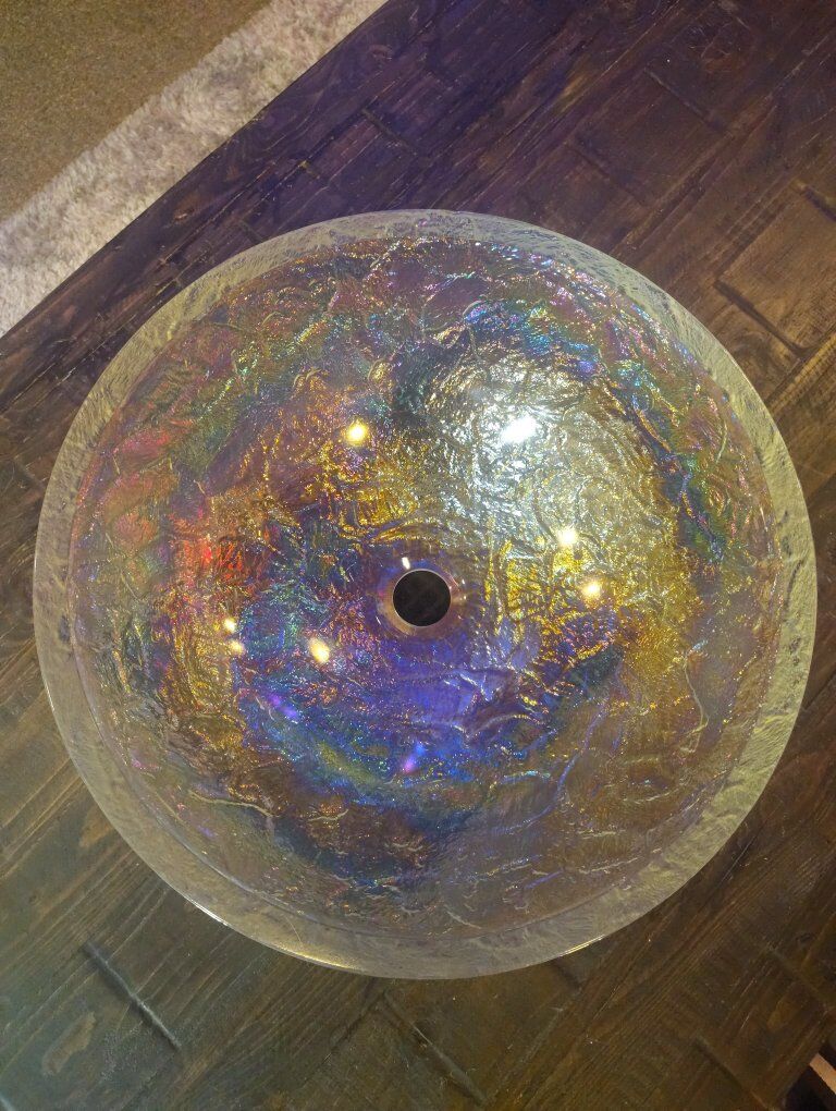 Absolutely Stunning Is This Elegant Oceana Iridescent Colored Blown Kitchen Or Bathroom Sink and is approximately 17" Across x 6" Deep x 3/4" Thick and is in pristine condition