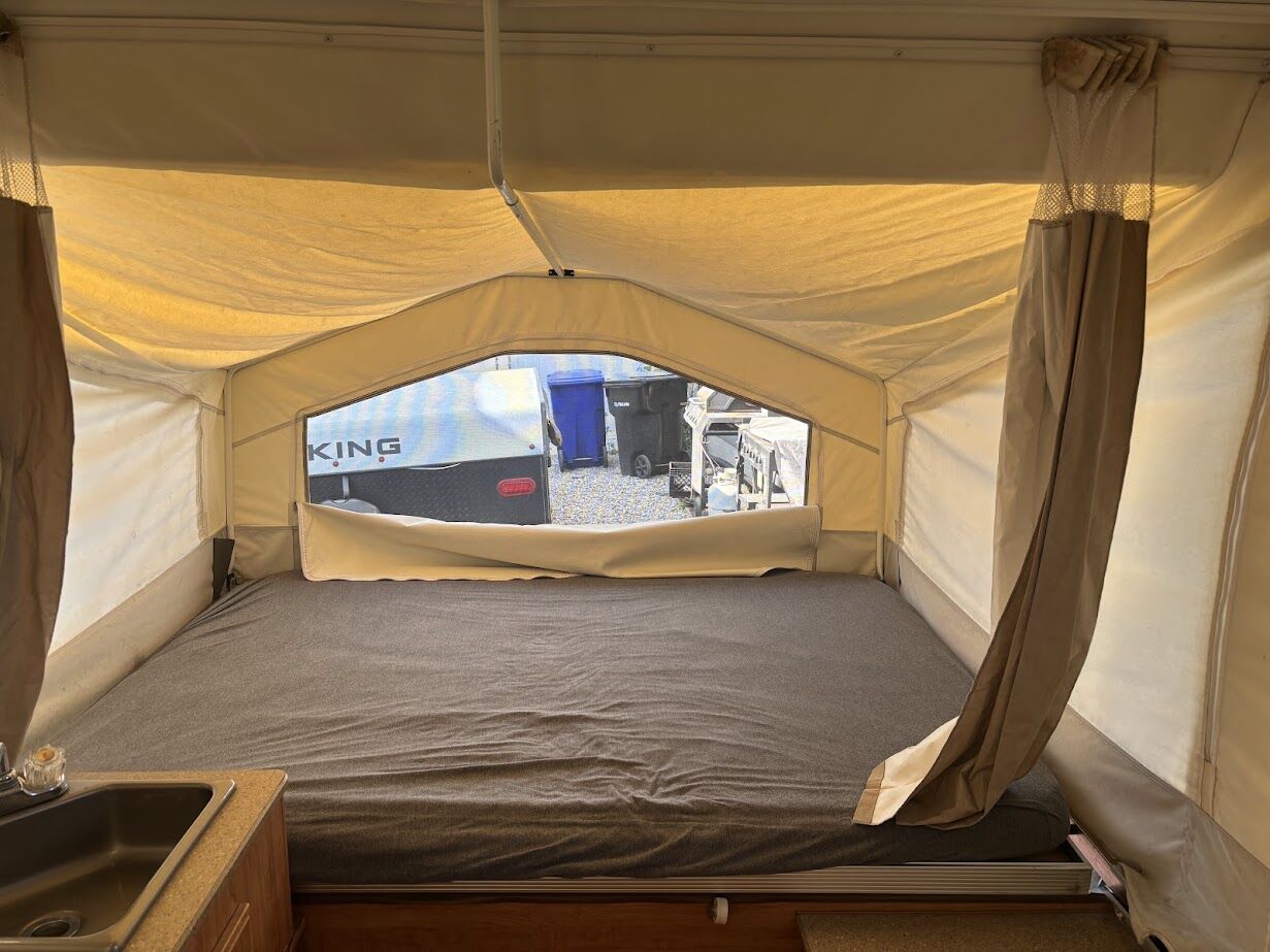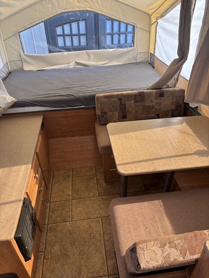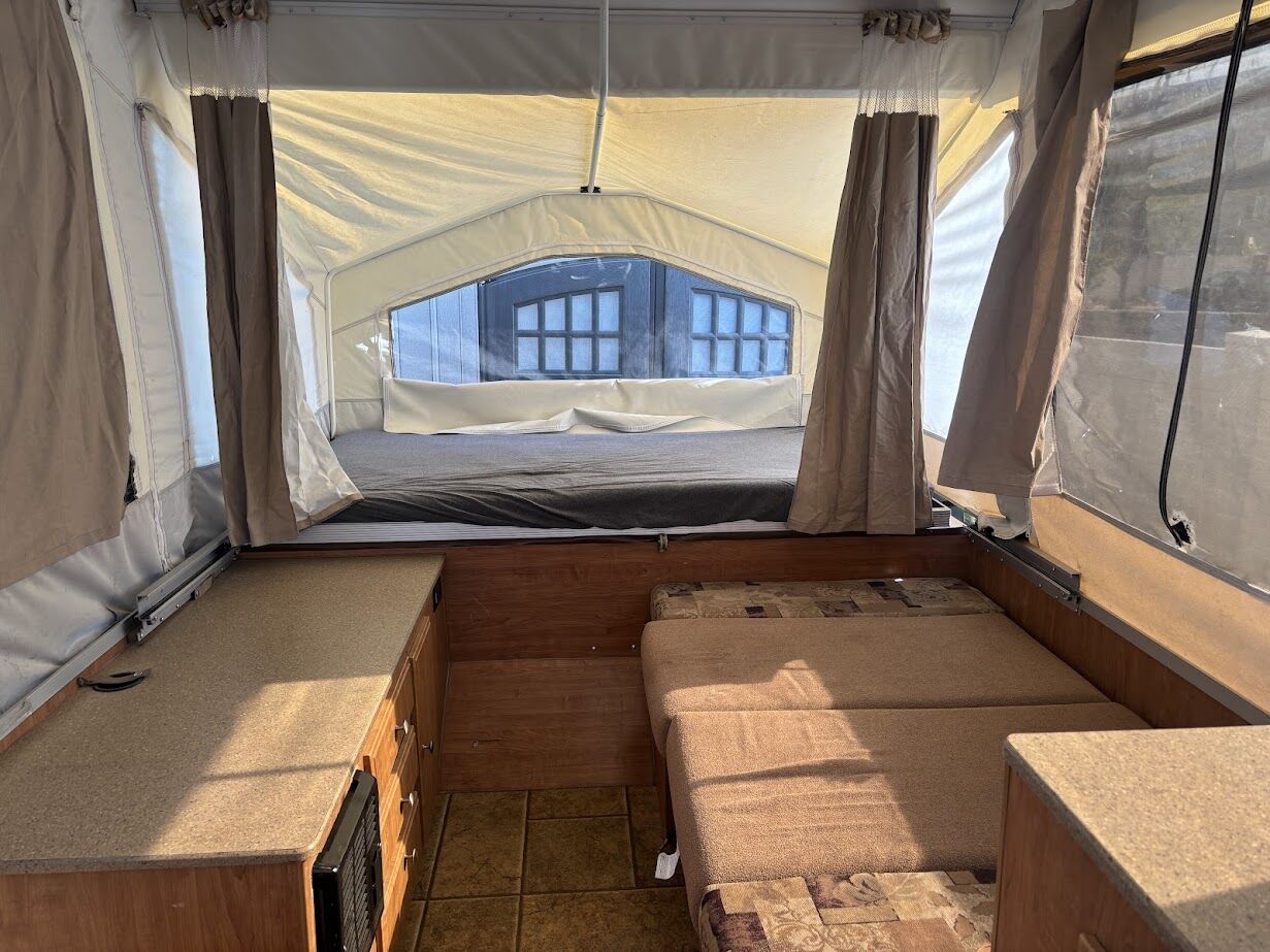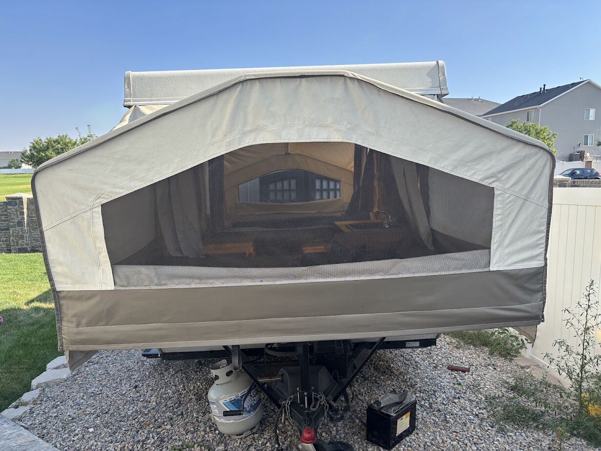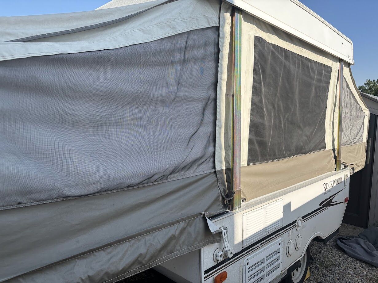 Venmo2011 Forest River Rockwood Pop UP Trailer. We have enjoyed this trailer immensly for the past few years, but decided to get a new trailer at the end of last year, so we have not taken it out this year. Great little trailer. Slept our family of 5 (Two adults and three smaller kids) great. Grill works well. Both interior lights work. I have never utilized the hook ups or the electrial hook ups so I dont know about those. Very simple pop up camper that can be towed by almost anything (GVW is less then 1500 pounds). New tires as of last year (Not the spare, that is still the original). It is older, and there are a few things to mention before anyone wants to come and look at it. (I was able to get pictures of most of what I will list here) A small dent on the top of the shell (I used a patch to cover it, we have never had problems with it leaking) The indoor breaker panel door is broken off (I attached it with electrical tape because you dont really have to access the breakers) Slight stains on one of the cushions. Cracking on the wood panel steps leading up to the bed (Will still hold weight) I have never used the fridge, so I dont know how it works. Does not come with awning. The propane was coming in to the pop up just fine, but I could not get the heater started easily. We typically just used a big buddy heater so I am not very good with getting it started so it is probably something simple. Please reach out with any questions or to schedule a time to come out and see it. Thanks for looking!