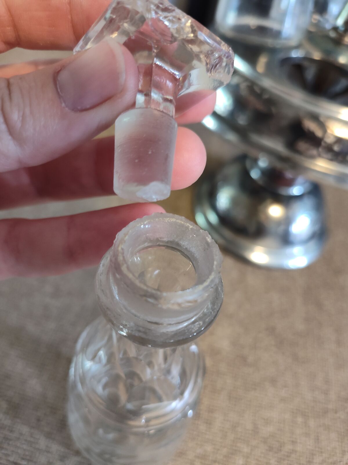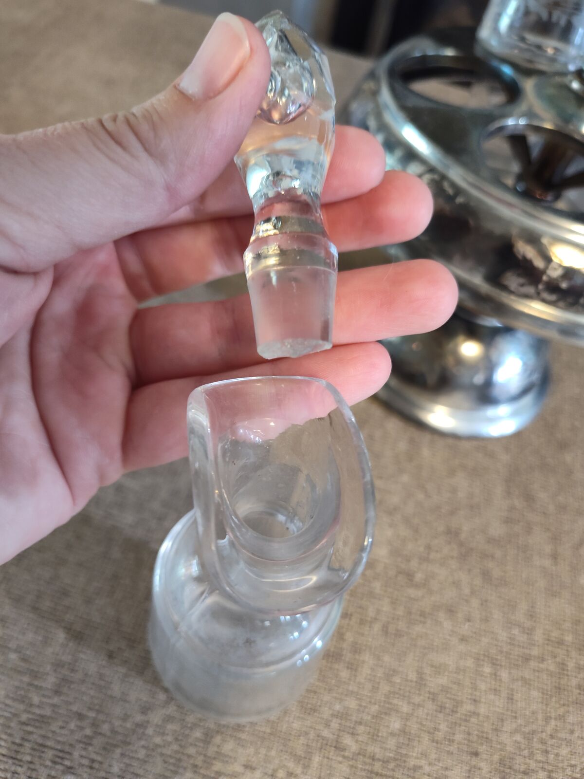 Has all 5 condiment jars. The edges on some are chipped on the inside from age / use (see images).