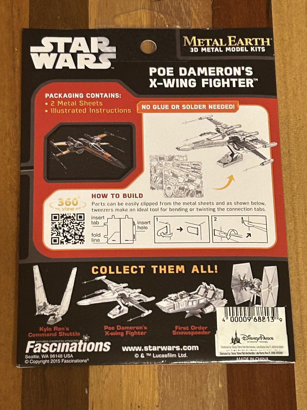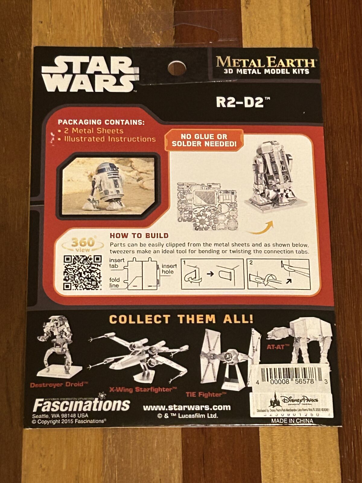 This listing is for 8 Star Wars Metal Earth model kit sets. Each kit is new, sealed in the original packaging. Most were purchased at Disneyland park in California. The following sets are for sale: Darth Vader's Tie Advanced X1 Starfighter AT-ST Slave 1 AT-AT R2-D2 Imperial Star Destroyer Poe Dameron's X-Wing Fighter X-Wing Starfighter Individual sets are $15 each or all 8 can be purchased for $90 (cash only please). Avaialbe for pickup in the Layton/Kaysville, Utah area (18+ years of age or accompanied by an adult, please). Please message on KSL or text me if you have any questions, or would like to purchase any or all of the sets. Thanks!