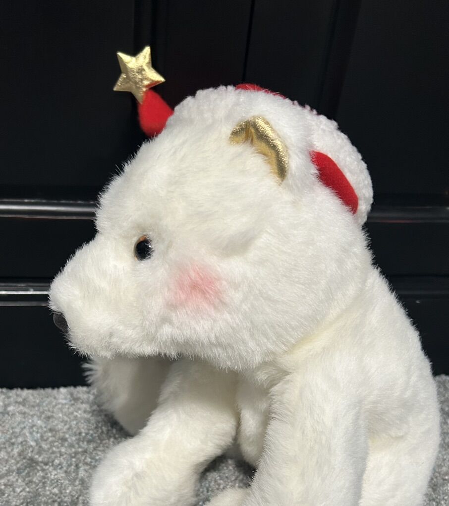 Take this darling, plush teddy bear home for Christmas. Good for snuggling all year long.